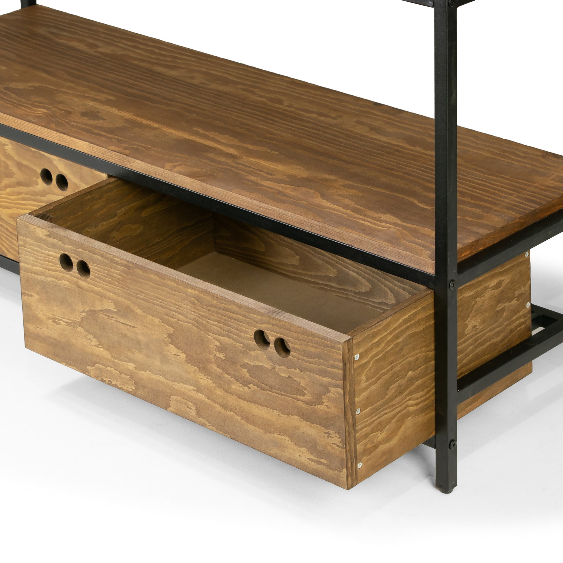 Alta Brown Pine Wood Display Shelf Etagere Metal Frame Bookcase with Drawers