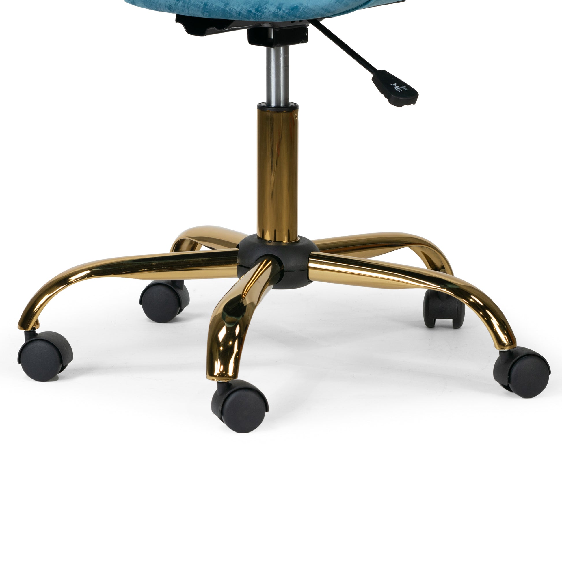 Amani Blue Velvet Office Chair with Golden Metal Base