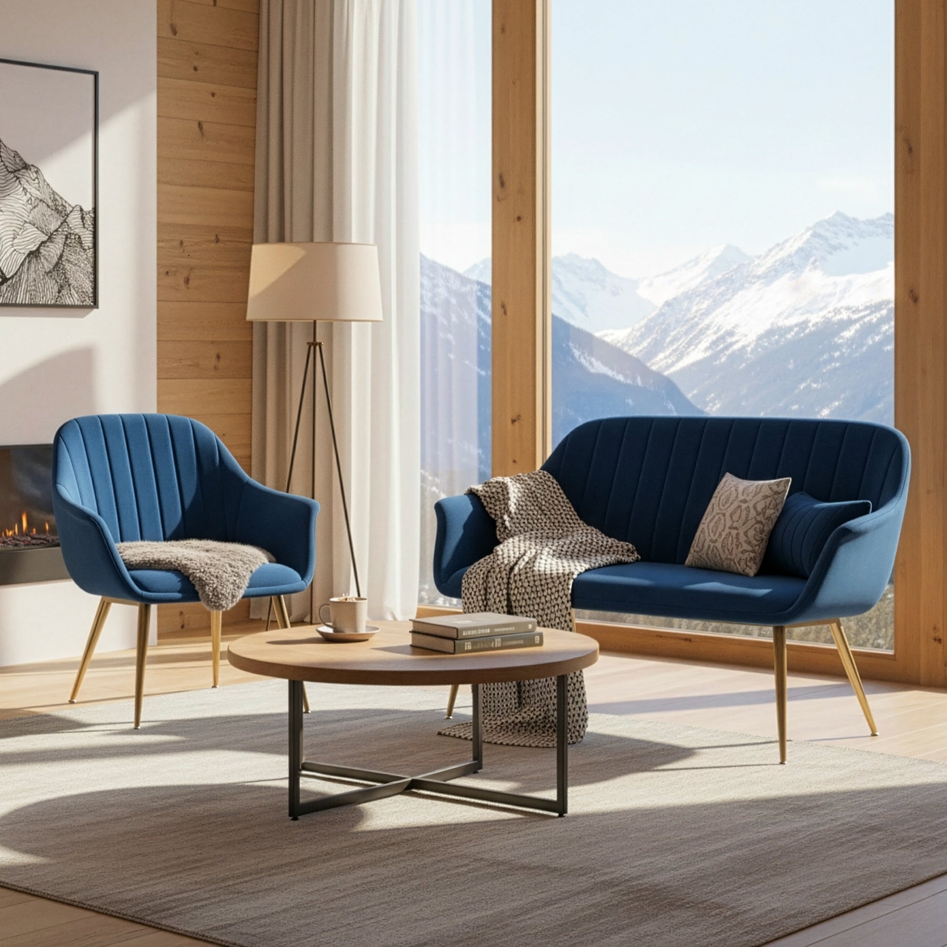 Angela Blue Velvet Loveseat and Accent Chair Set