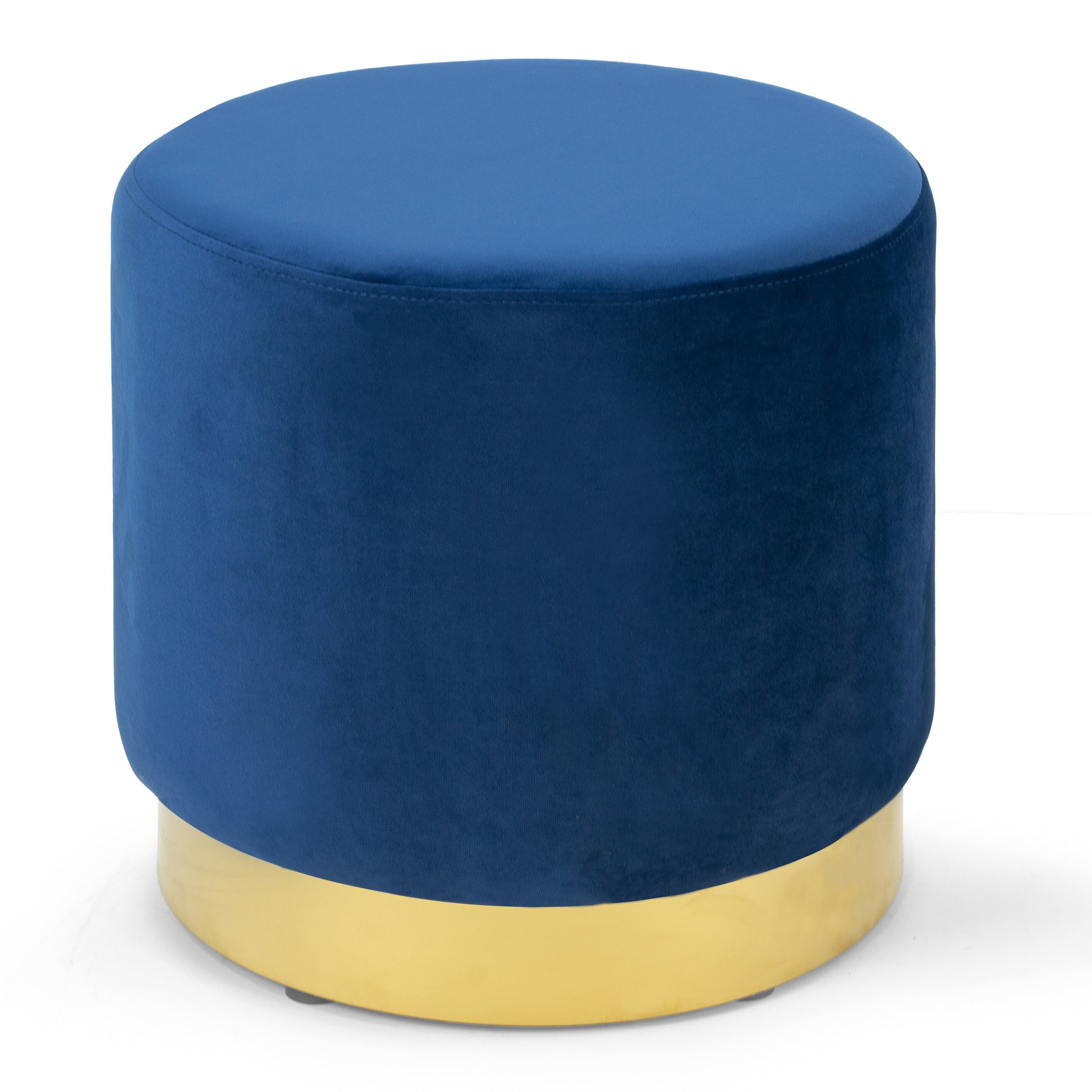 Anna Blue Velvet Round Footstool Ottoman with Golden Accent Base Small-Medium Set