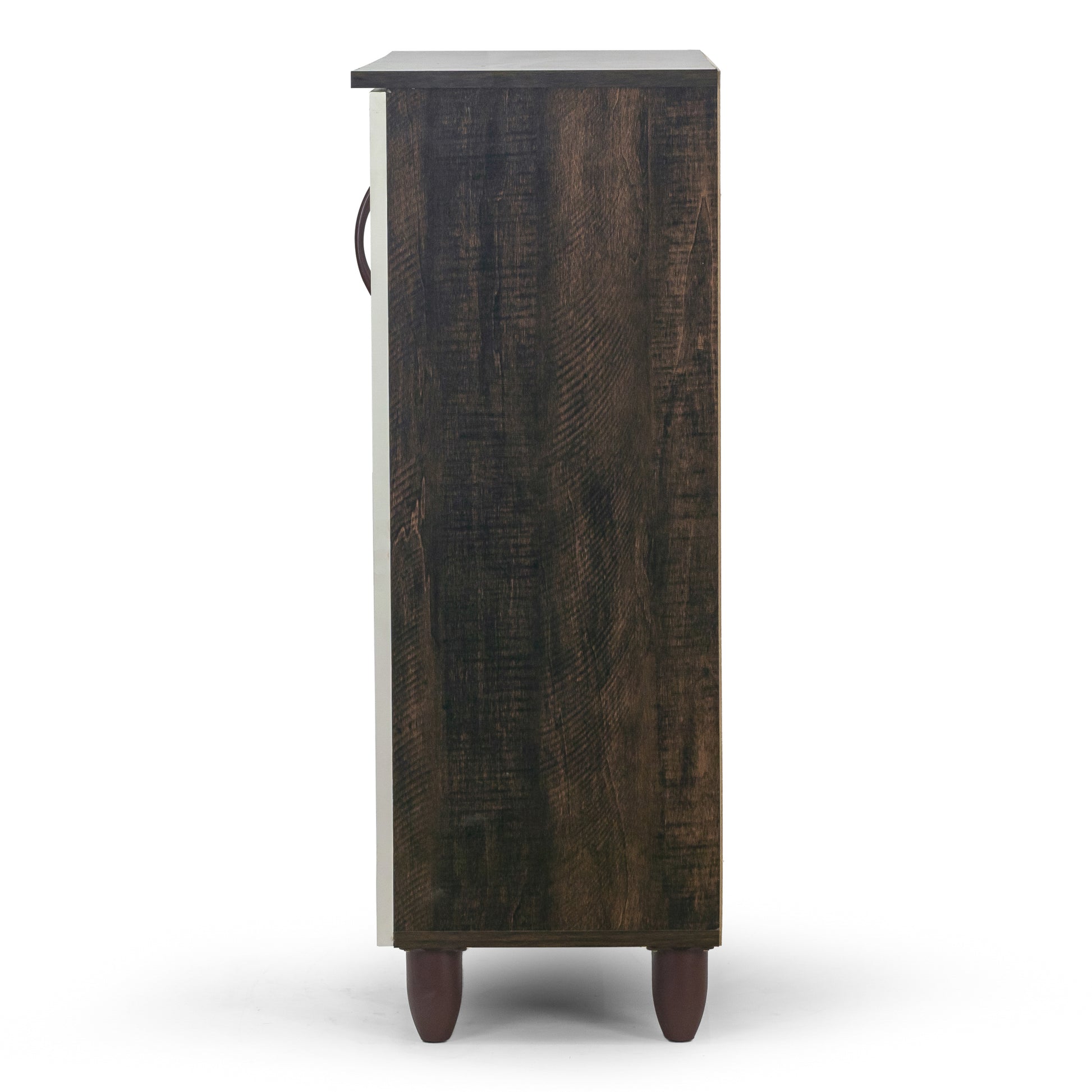 This shoe cabinet is where you can give your shoes a neat and stylish home. Modern Scandinavian design with contrasting wenge and white finish, this cabinet is simple yet classic. Four shelves provide plenty of storage and organization space for your shoes and items.