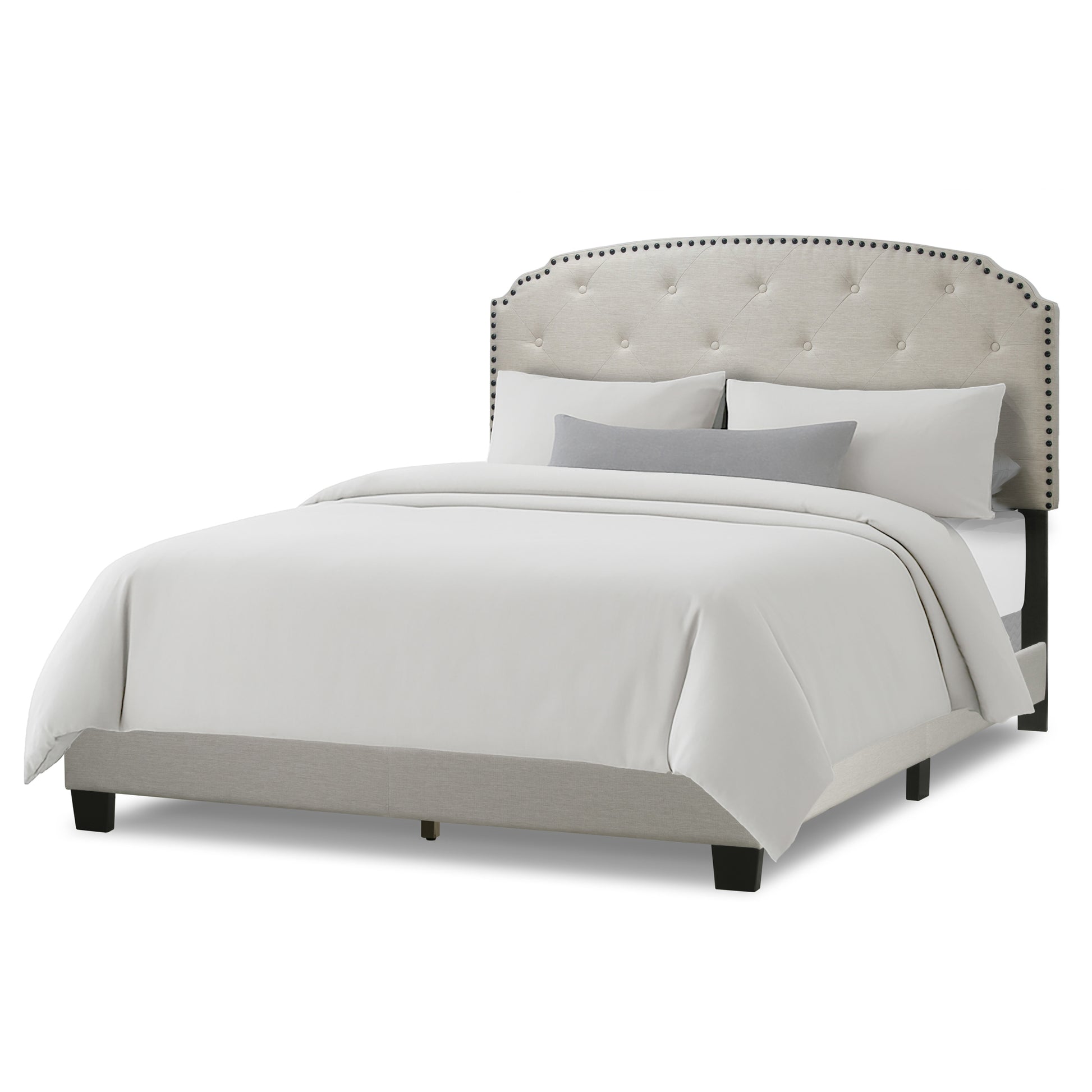 Arin Beige Fabric Queen Bed with Button Tufting and Black Nail Head Trim