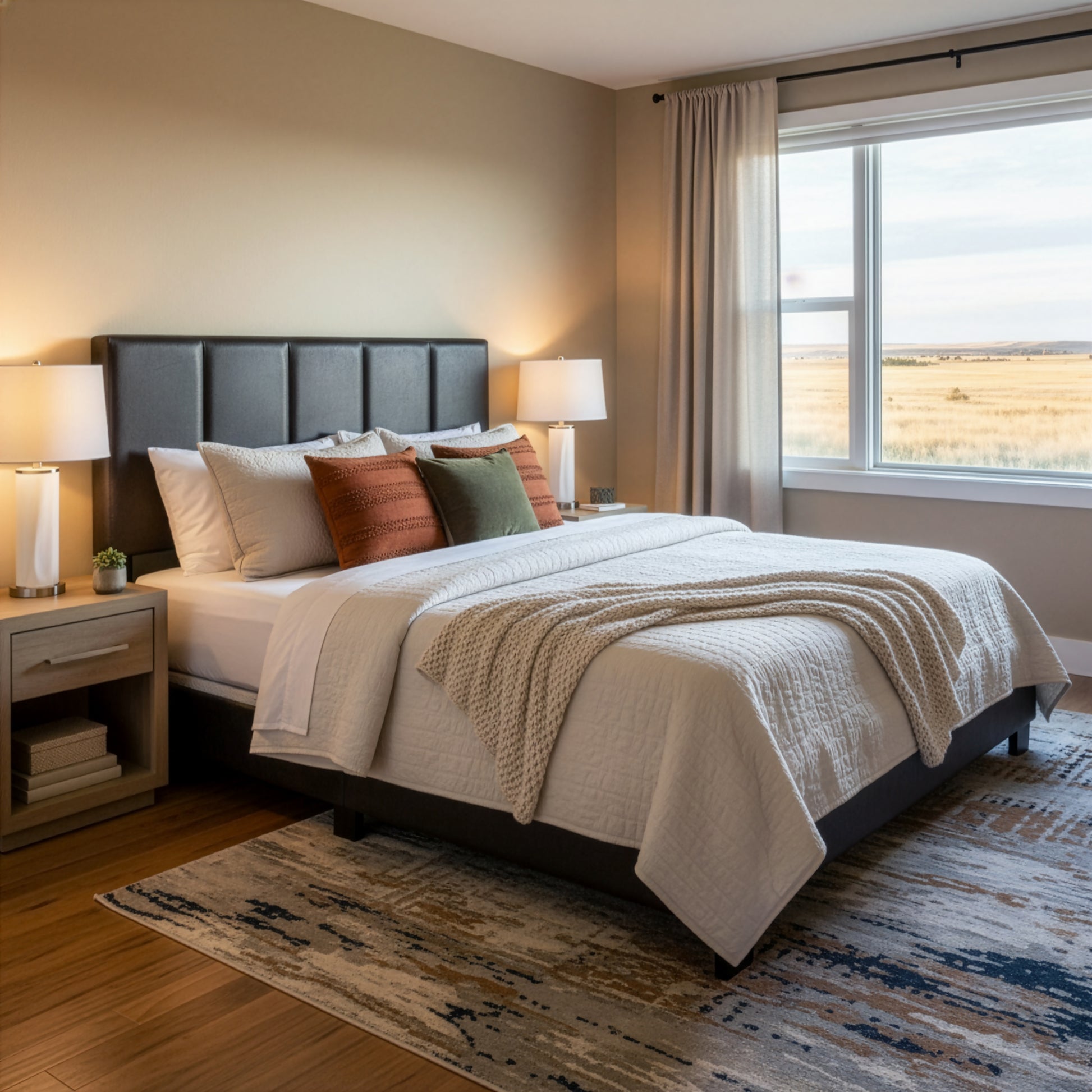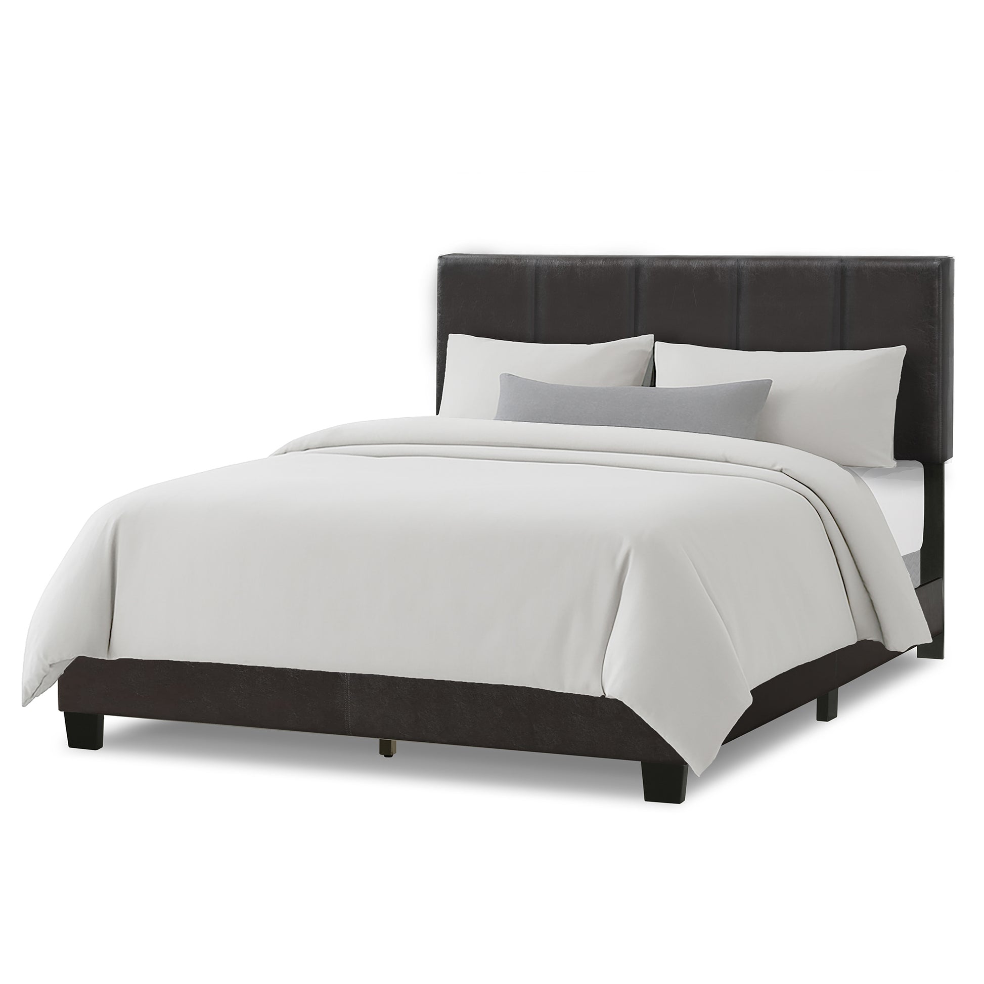 Arty Black Brown Faux Leather Queen Bed with Line Stitch Tufting