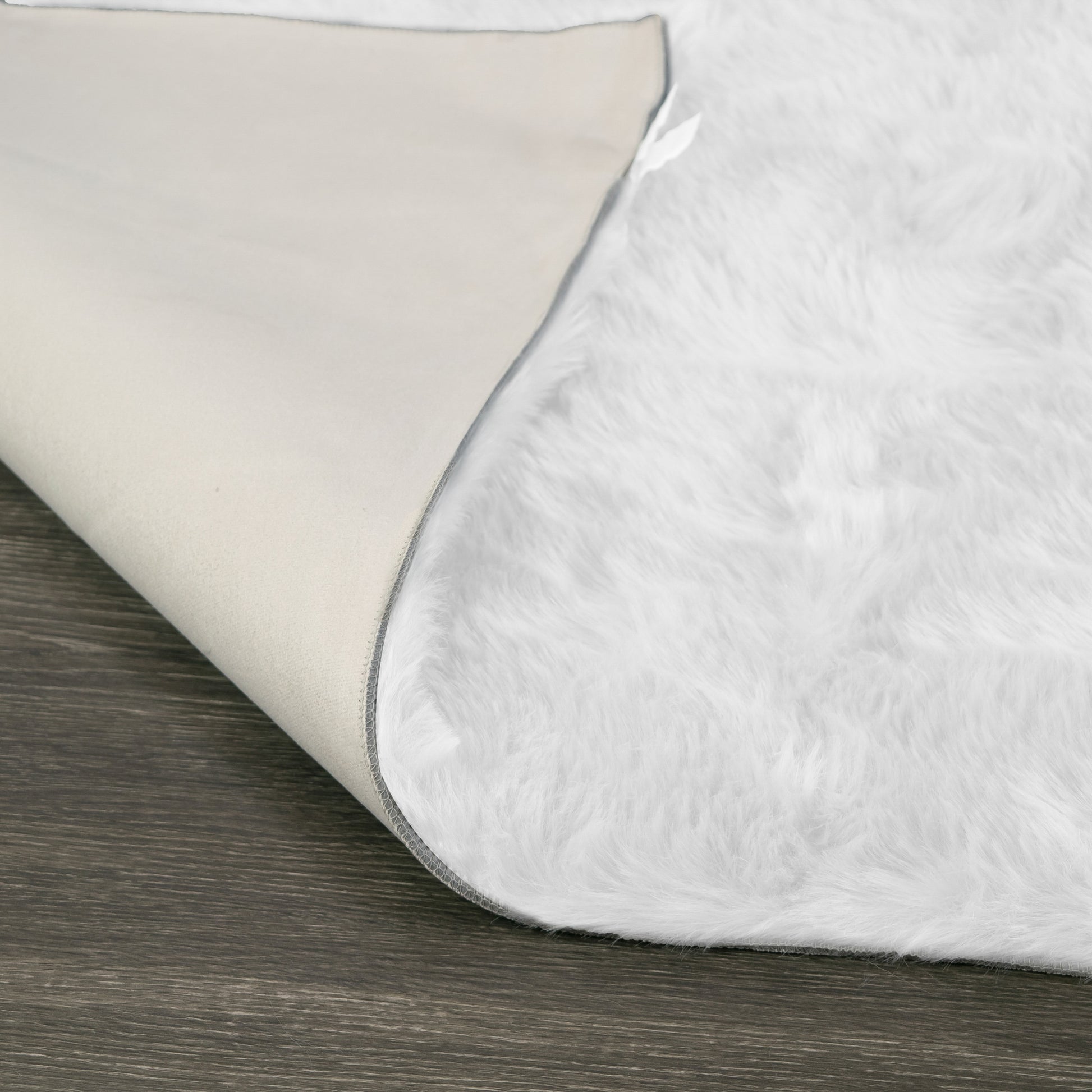 Auriel Faux Sheepskin Fur Area Rug White Rectangular 5x7