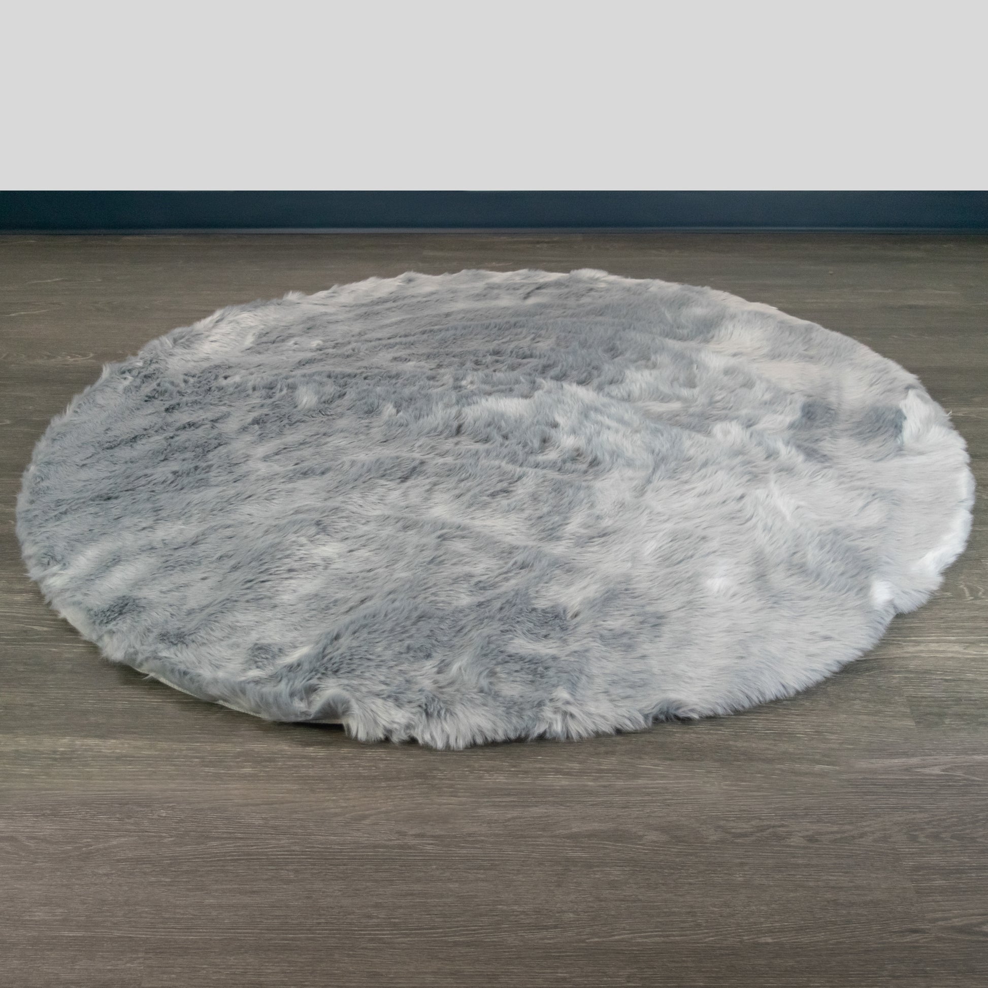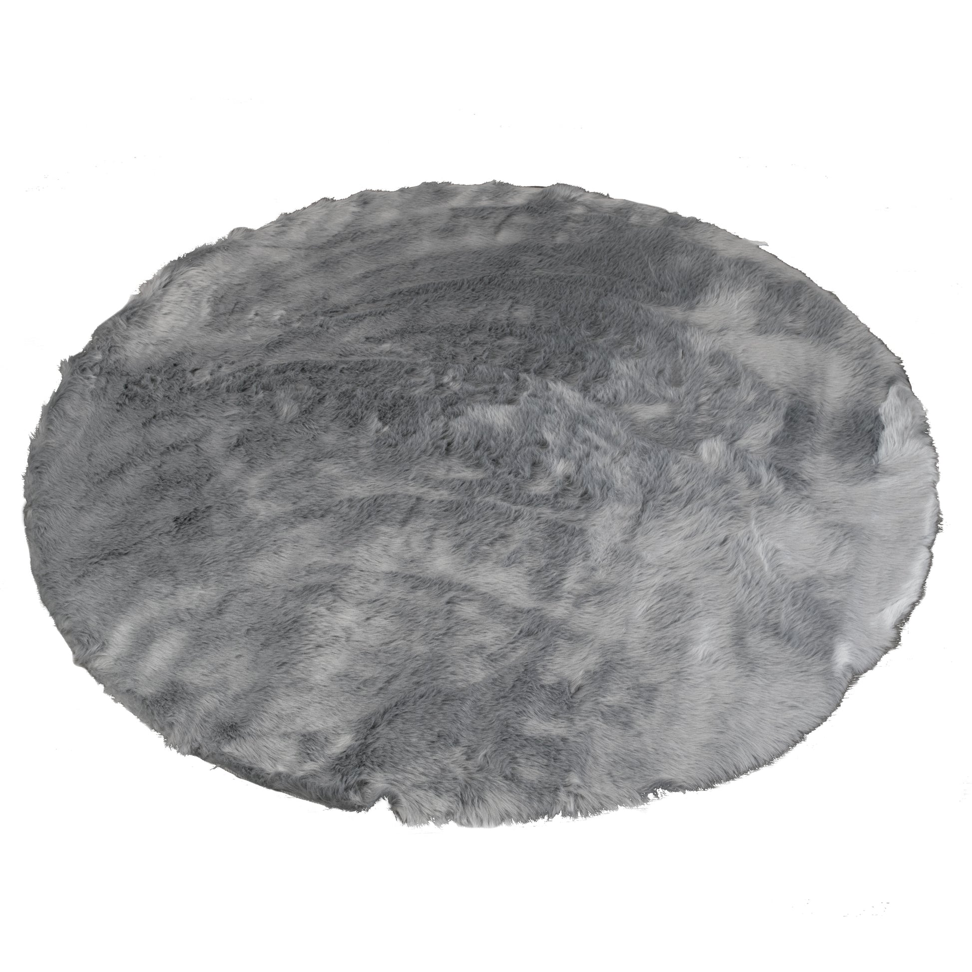 Aurora Grey Round Faux Fur Area Rug 4 Foot Wide