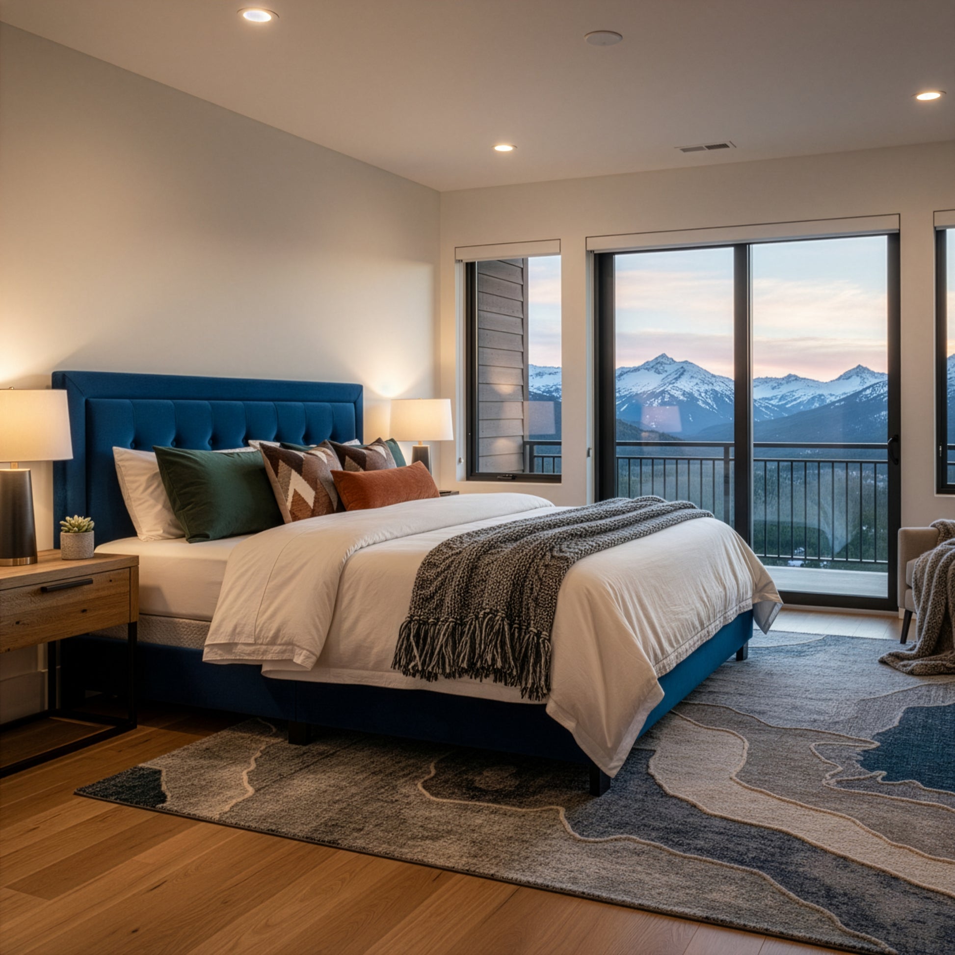 Austin Navy Blue Velvety Fabric Queen Bed with Button Tufting and Stitching