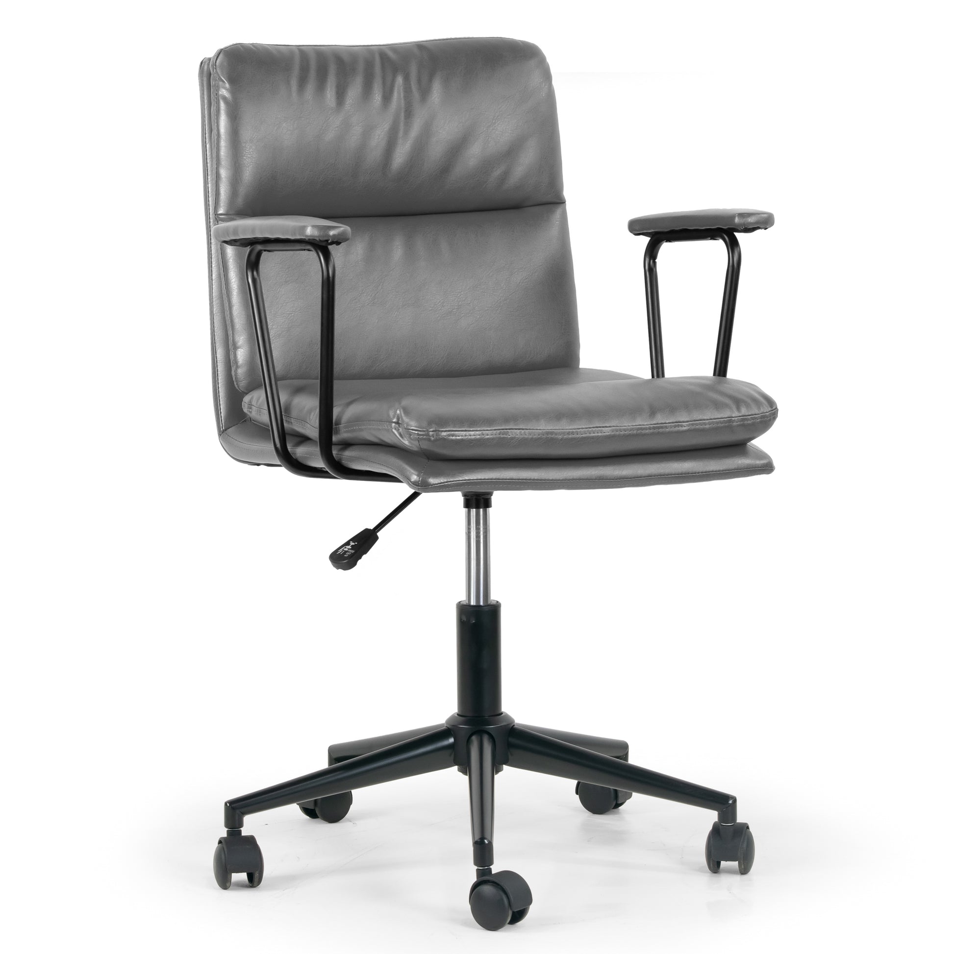 Avalee Grey Faux Leather Adjustable Height Swivel Office Chair with Arms