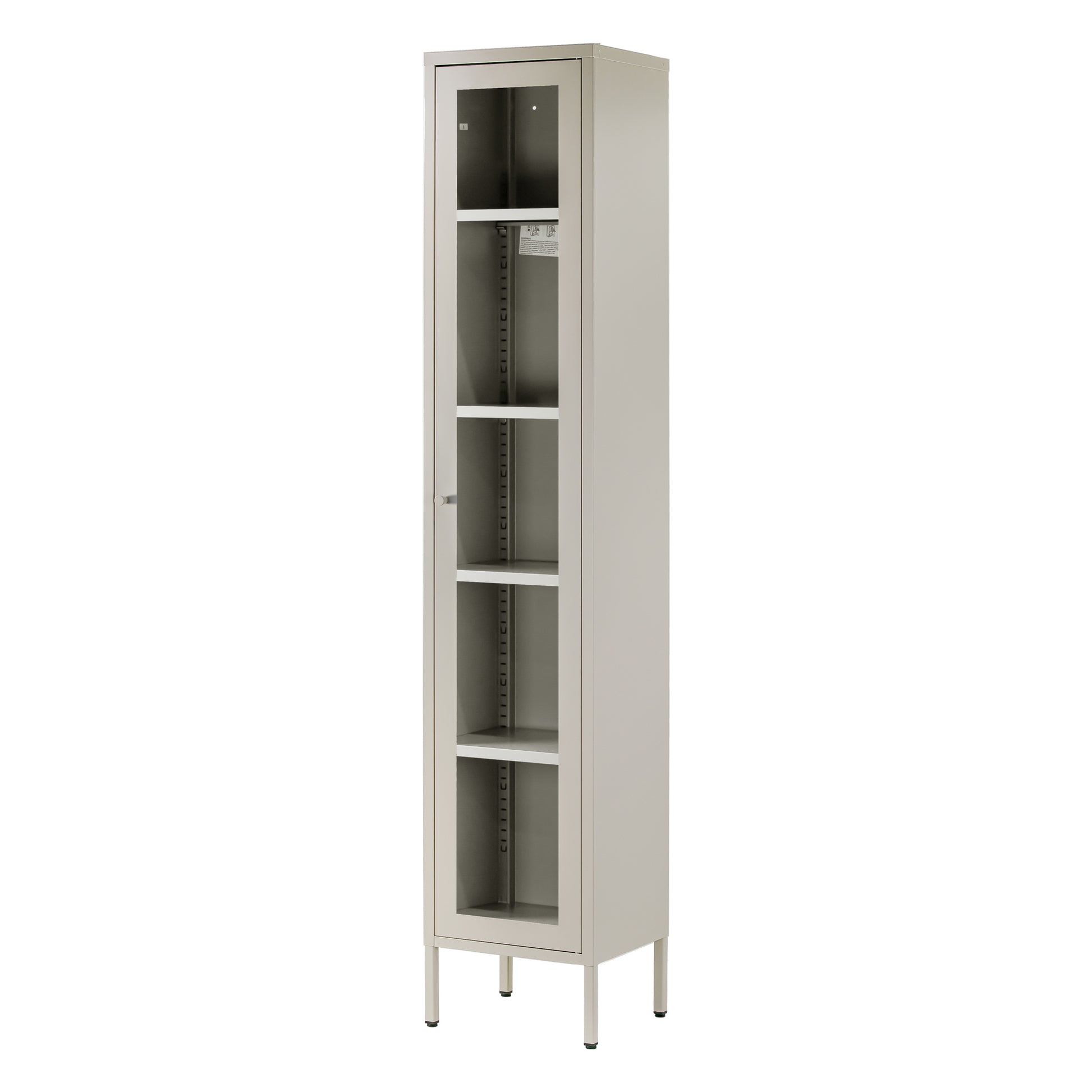 A high-quality storage solution designed to provide both functionality and style. The cabinet is constructed from sturdy steel and features an acrylic glass door that provides a clear view of the contents inside.