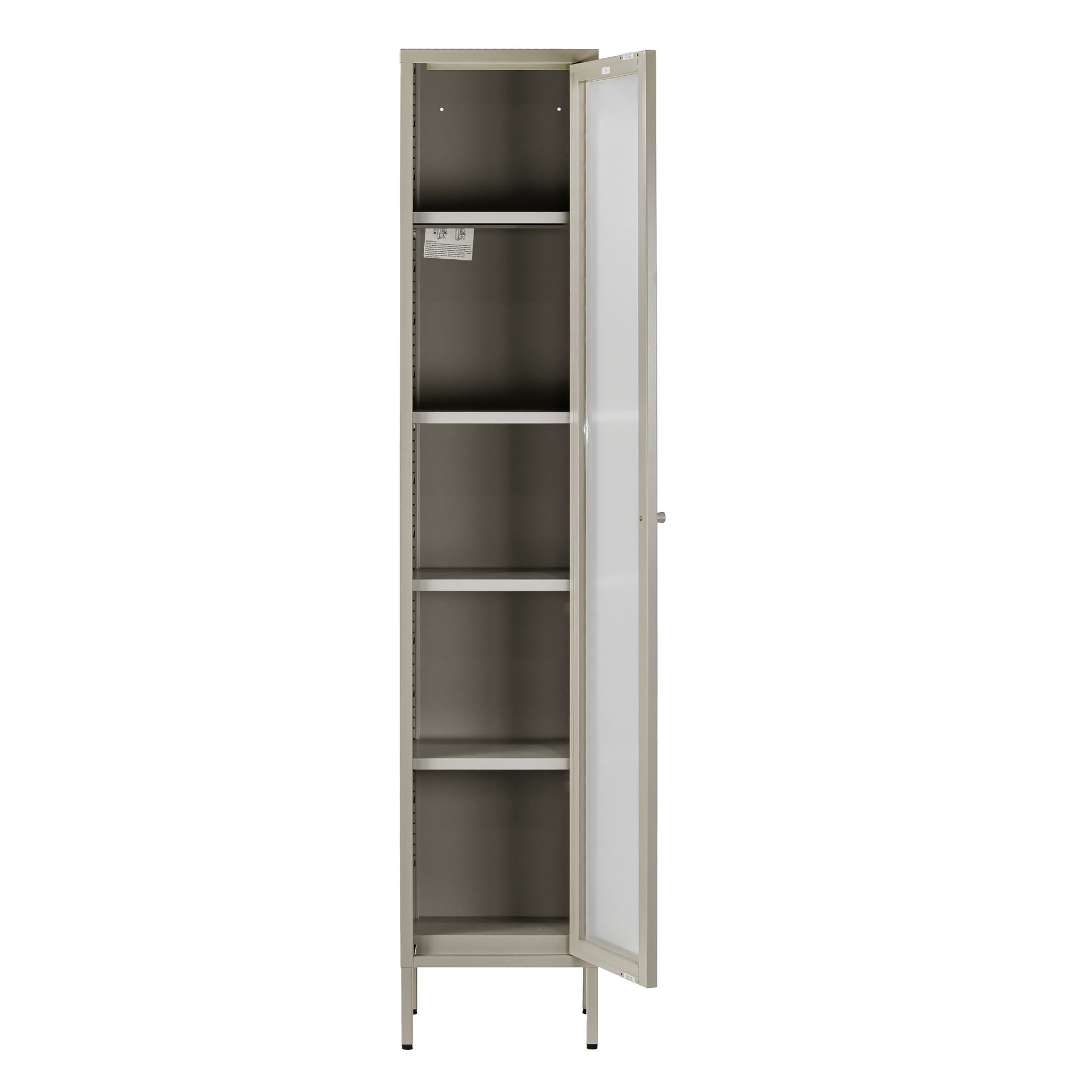 The cabinet is available in various finishes, allowing you to choose the one that best fits your decor. Its adjustable shelves allow you to customize the interior space to accommodate a wide range of items. The shelves are made of metal as well, providing added durability and strength.