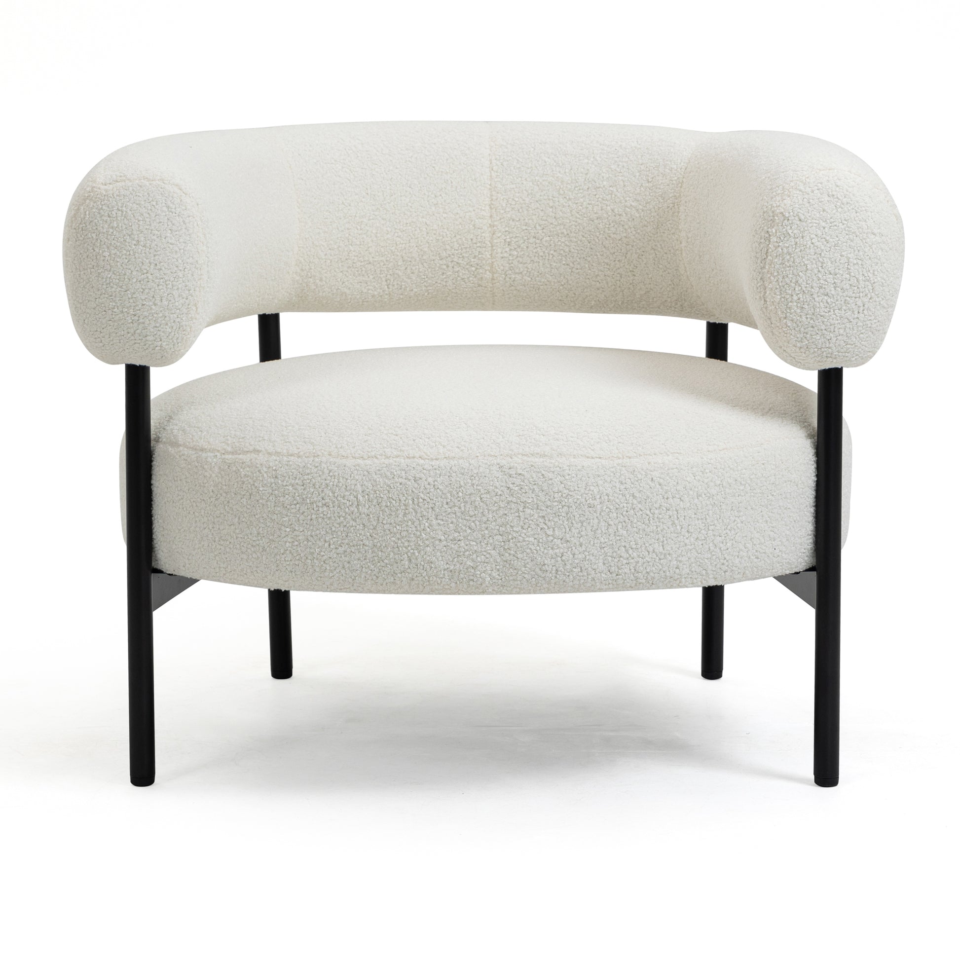 Ayuka White Boucle Fabric Accent Chair with Black Iron Legs