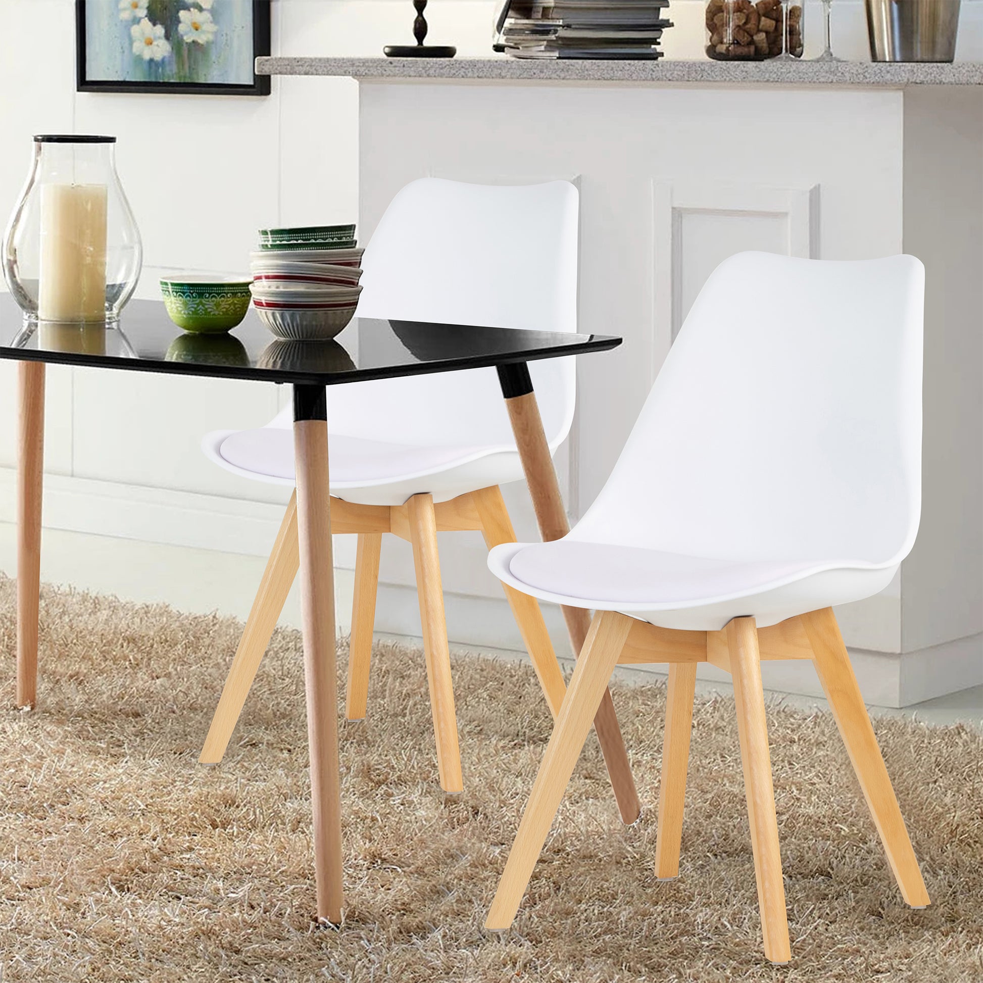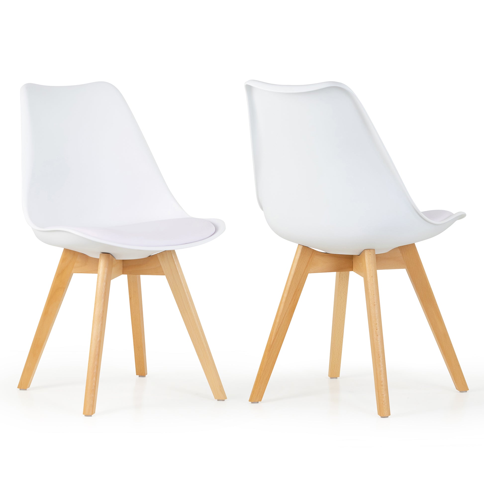 Elevate your dining experience with our set of 4 white plastic chairs featuring cushioned seats. The crisp white design adds a contemporary touch to any space, while the durable plastic ensures longevity and easy maintenance. The cushioned seats provide comfort, making these chairs perfect for extended gatherings. Enhance your dining area with this stylish and functional set, where modern aesthetics meet comfort seamlessly.