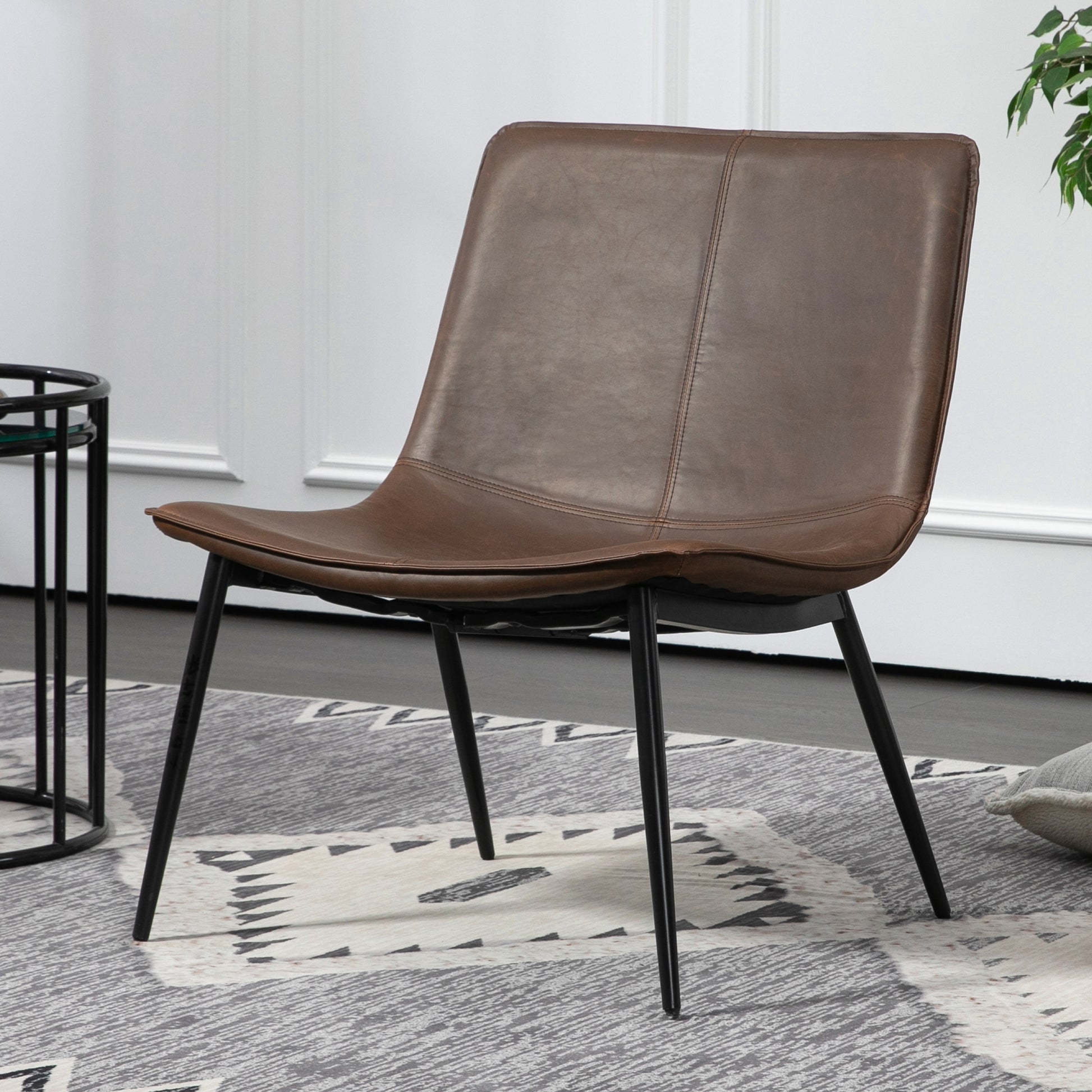 Unwind in style with our dark brown faux leather accent chair, offering a perfect blend of comfort and sophistication. The rich brown hue exudes warmth, while the faux leather upholstery adds a touch of luxury. With a sleek silhouette and versatile design, this accent chair is an inviting and timeless addition to any living space, enhancing both aesthetics and relaxation.