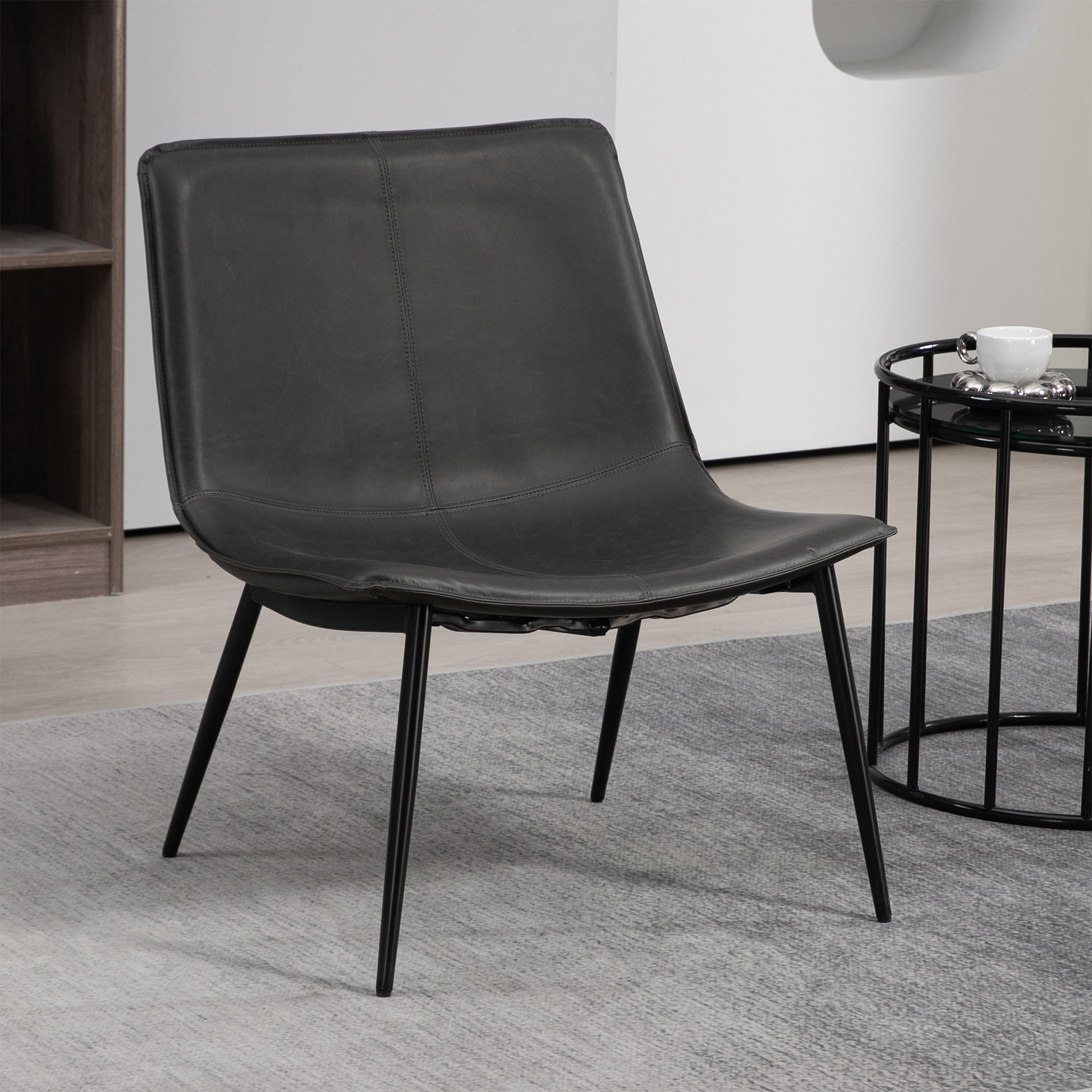 Unwind in style with our dark gray faux leather accent chair, offering a perfect blend of comfort and sophistication. The rich gray hue exudes warmth, while the faux leather upholstery adds a touch of luxury. With a sleek silhouette and versatile design, this accent chair is an inviting and timeless addition to any living space, enhancing both aesthetics and relaxation.