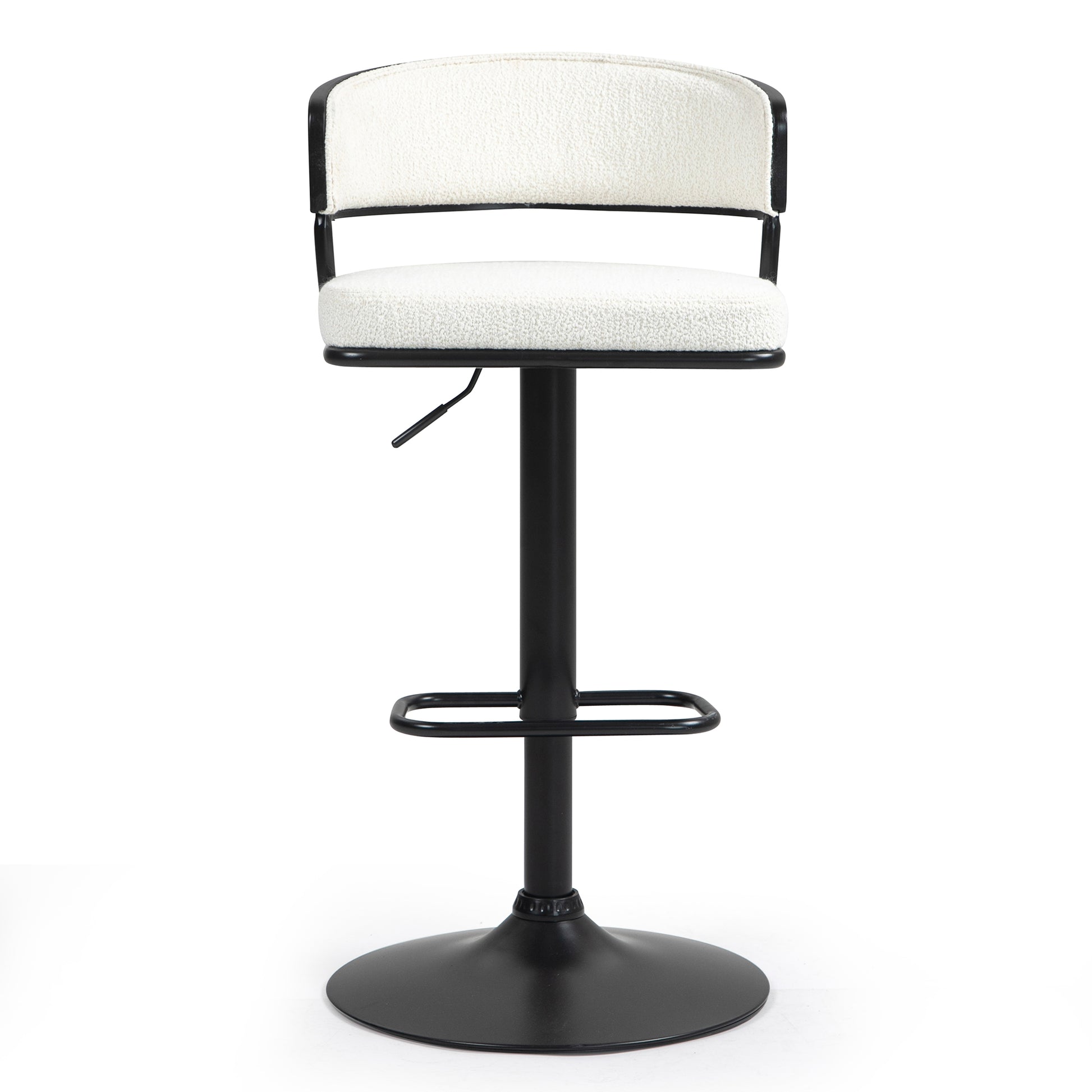 Bayle White Boucle Fabric Adjustable Bar Stool with Iron Pedestal