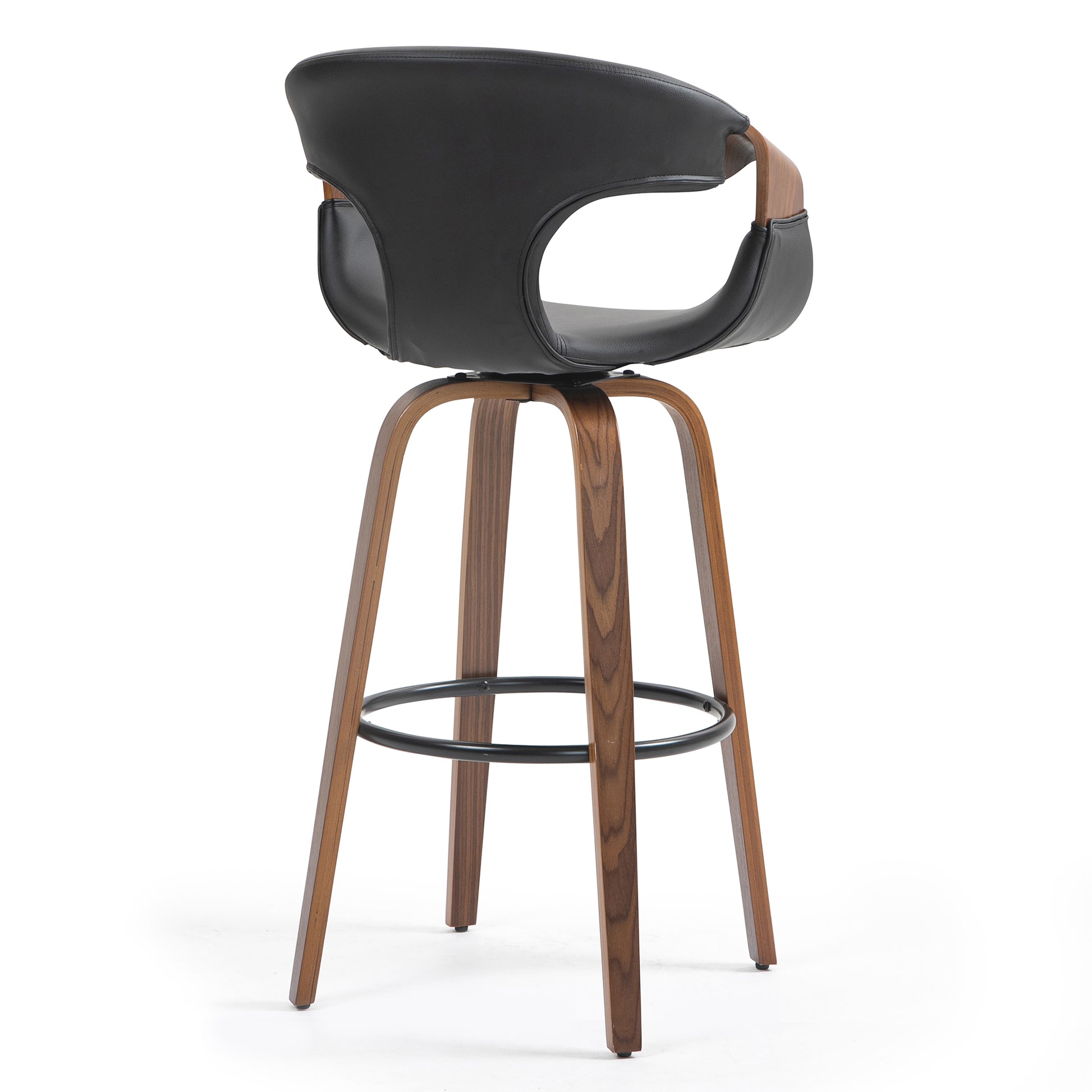 Baylor Black Faux Leather Bar Stool with Walnut Wooden Legs