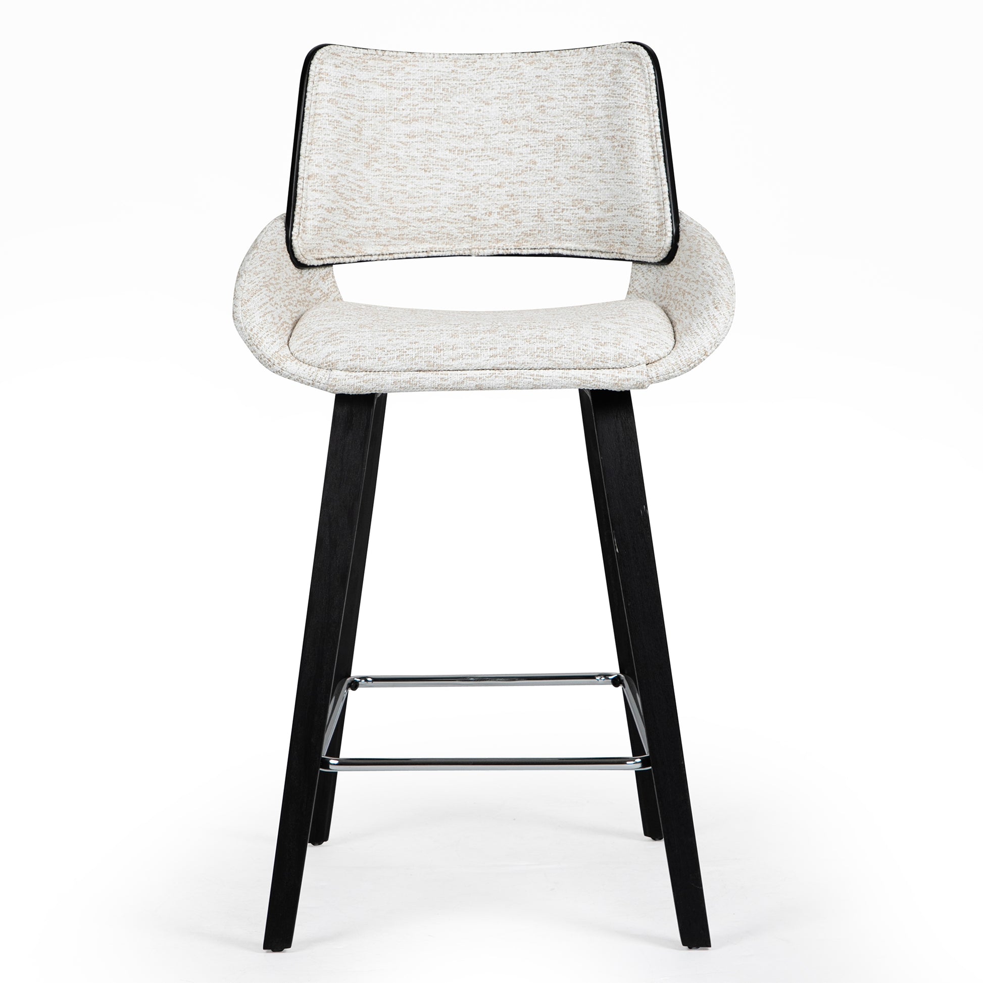 Bea White Two-Toned Linen Fabric Counter Stool with Black Wood Legs