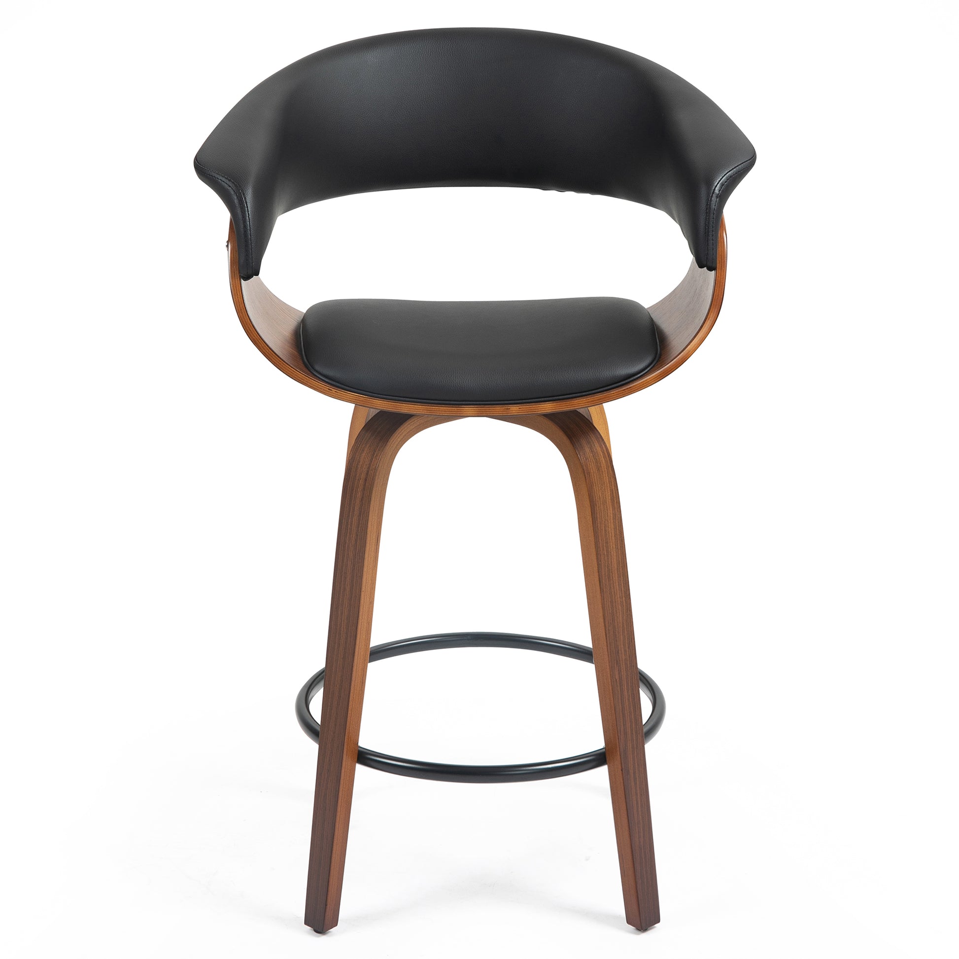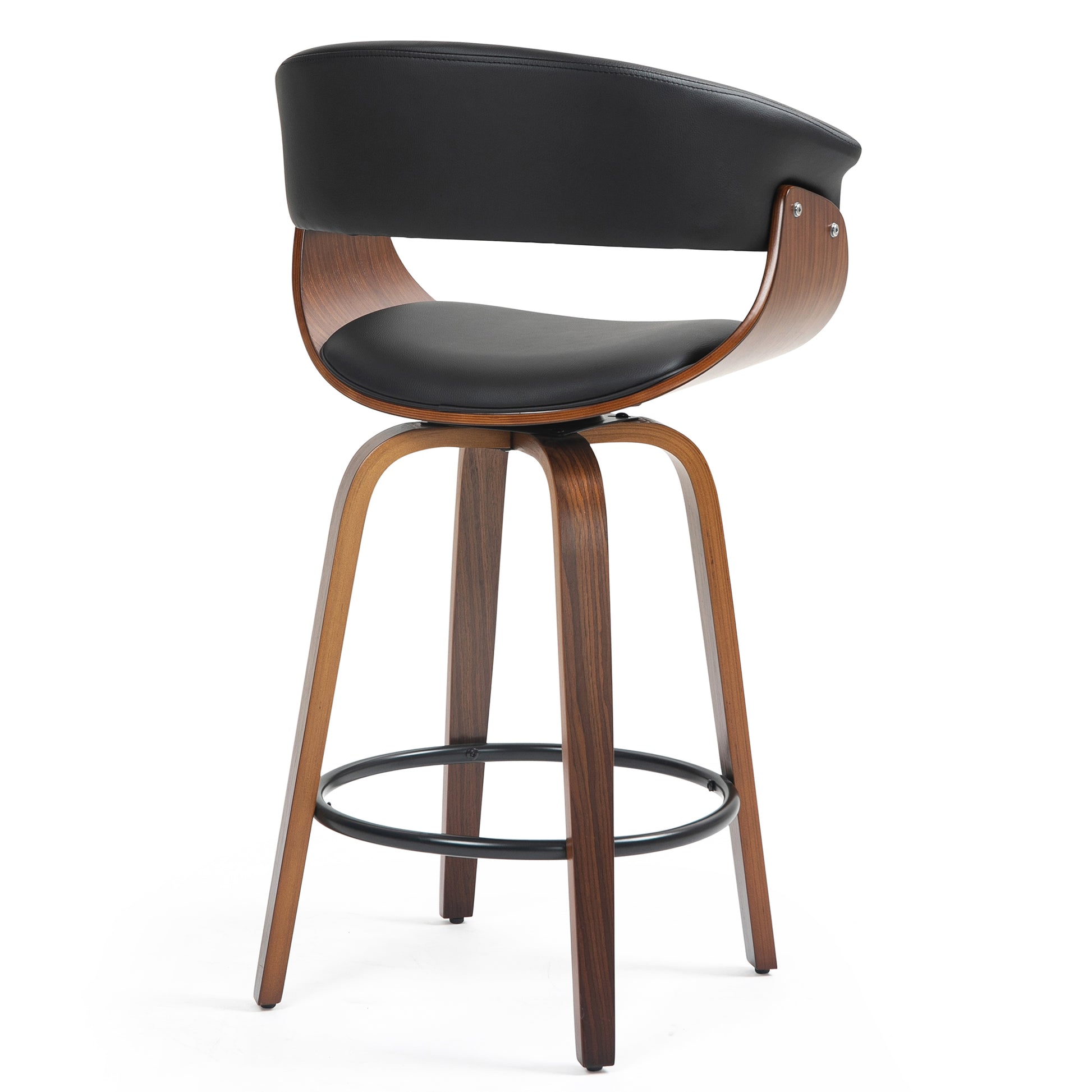 Beale Black Faux Leather Counter Stool with Walnut Wood Accent Legs