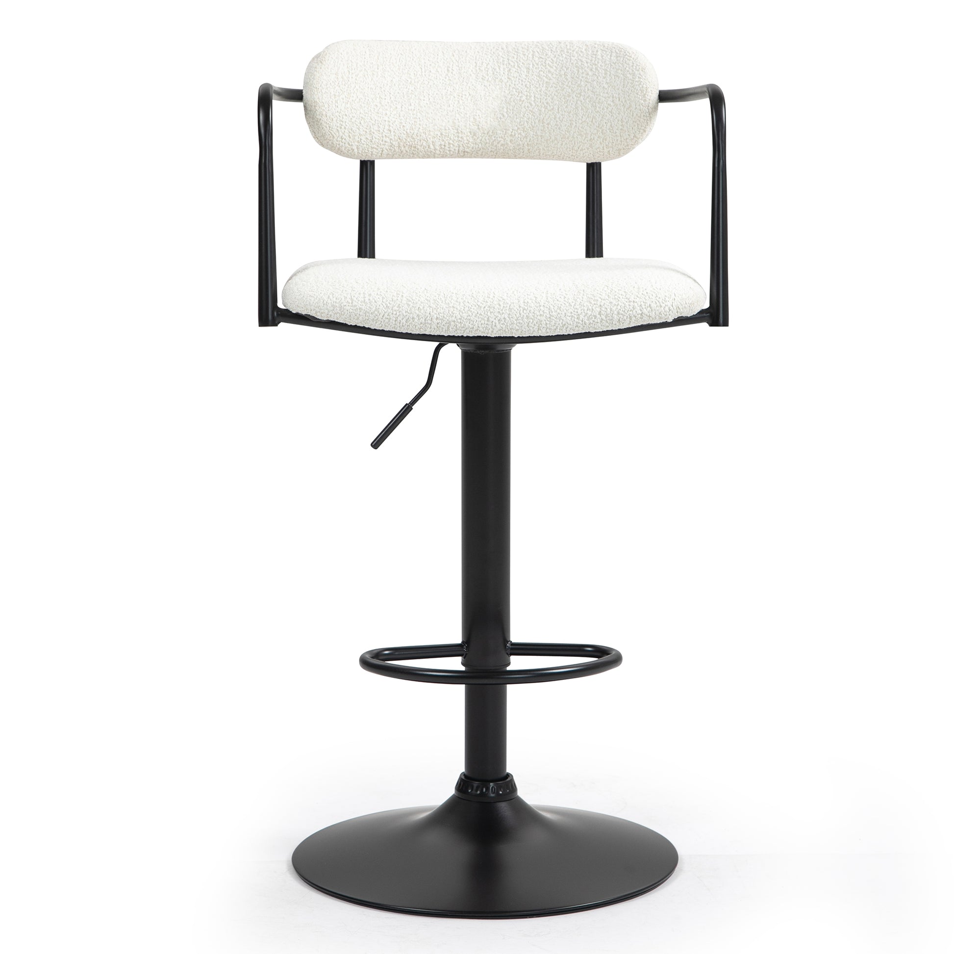 Elevate your bar area with our sophisticated beige boucle fabric adjustable bar stool. Luxurious boucle fabric ensures comfort, while black iron arms and legs add a sleek, modern touch. Whether for casual drinks or cozy conversations, its adjustable feature ensures the perfect height for any occasion. Redefine your space with this chic and versatile seating option, blending style and functionality effortlessly.