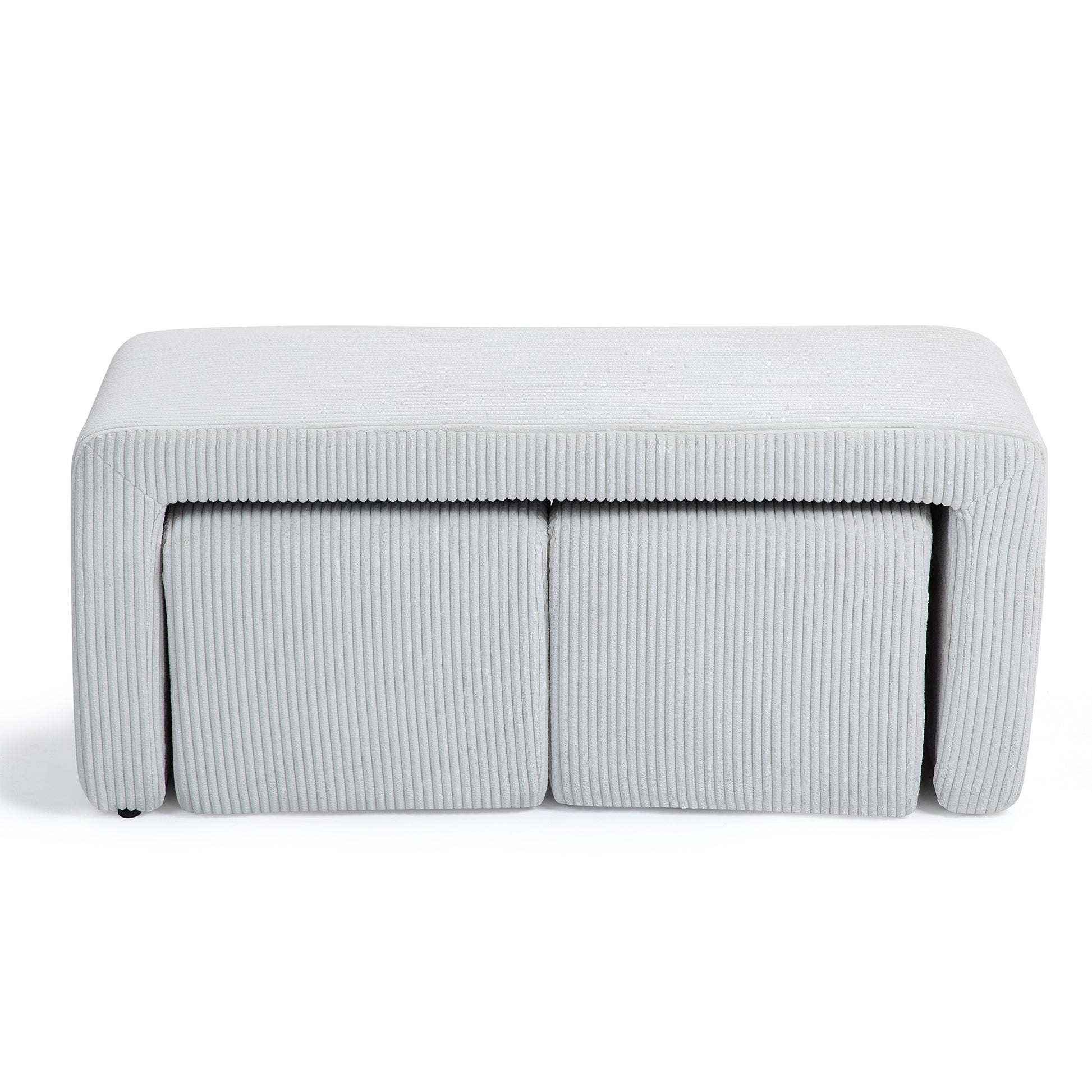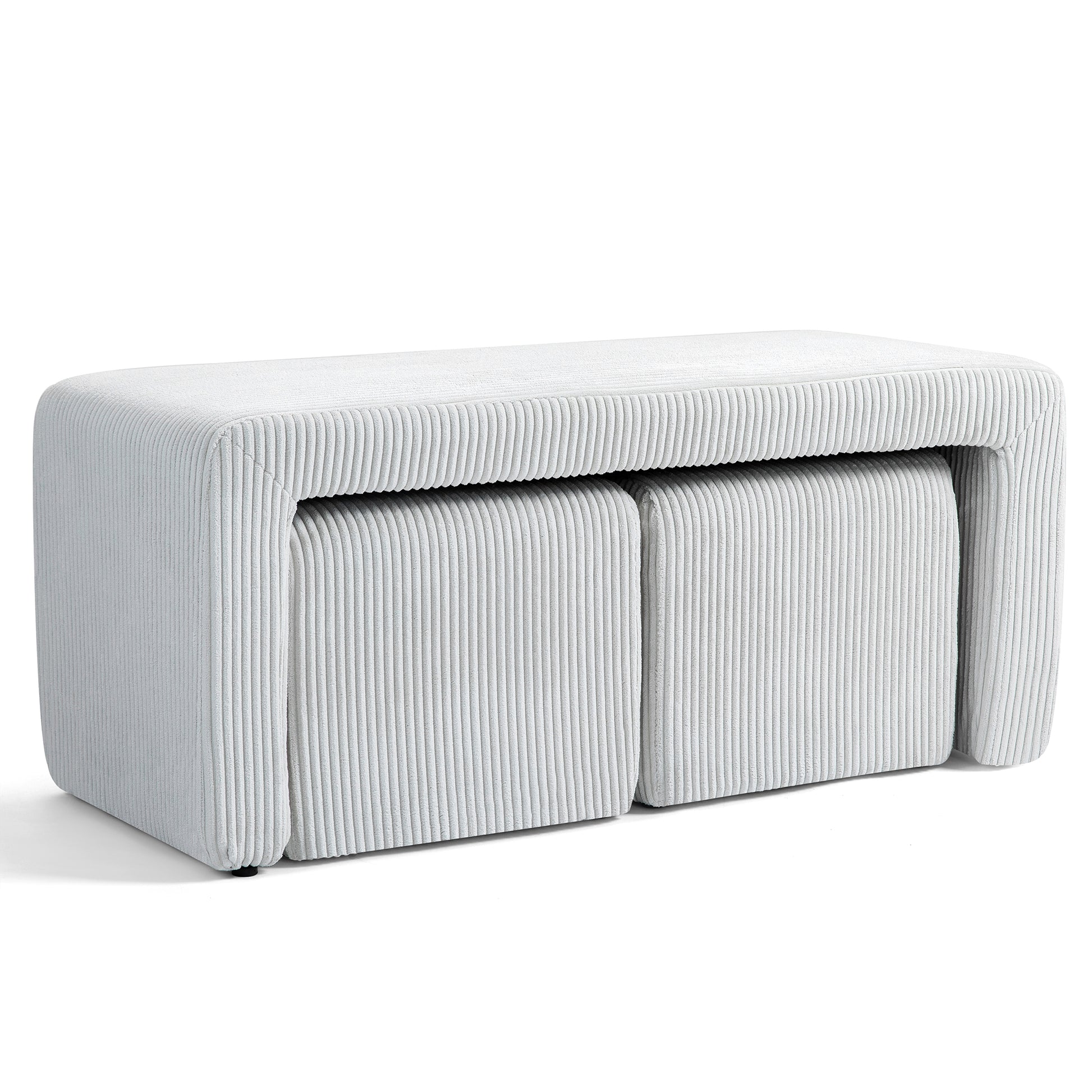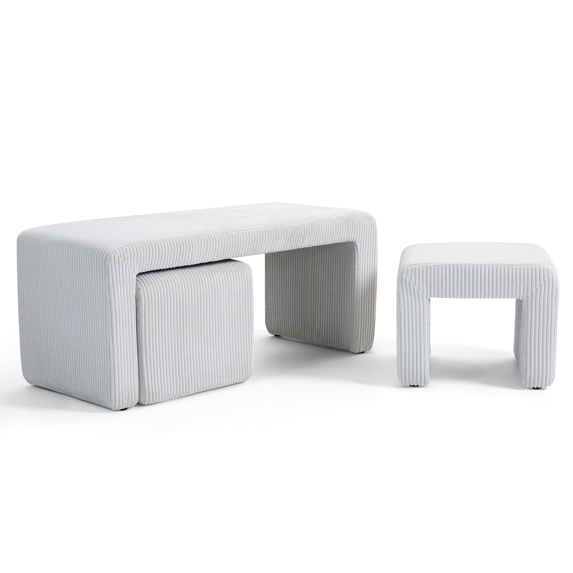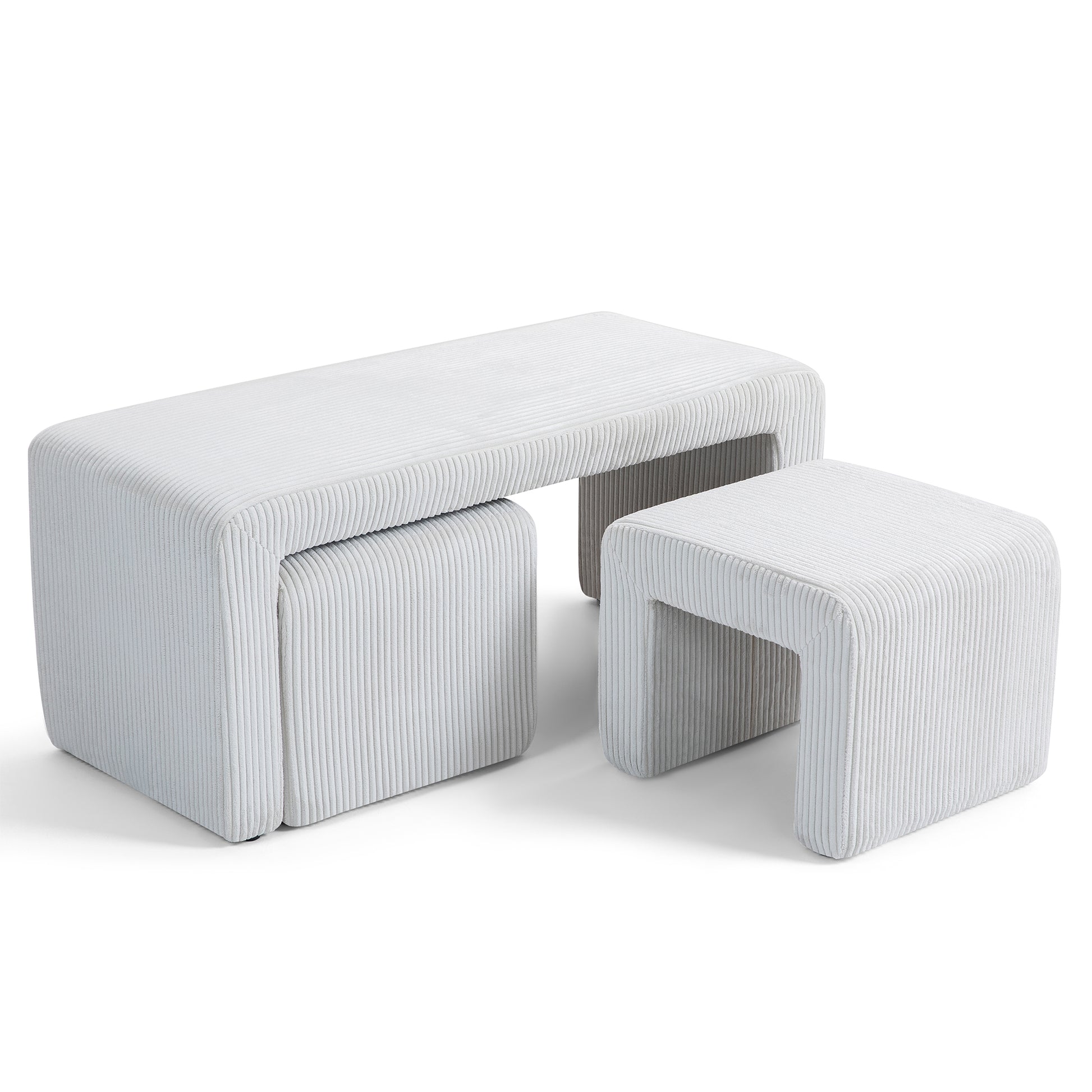 Elevate your space with our chic beige corduroy velvet fabric nested bench, designed for both style and comfort. This versatile piece features plush ottomans that tuck neatly underneath, making it perfect for small areas. The rich texture and luxurious finish add a touch of elegance to any room, while providing extra seating and a cozy spot for relaxation.