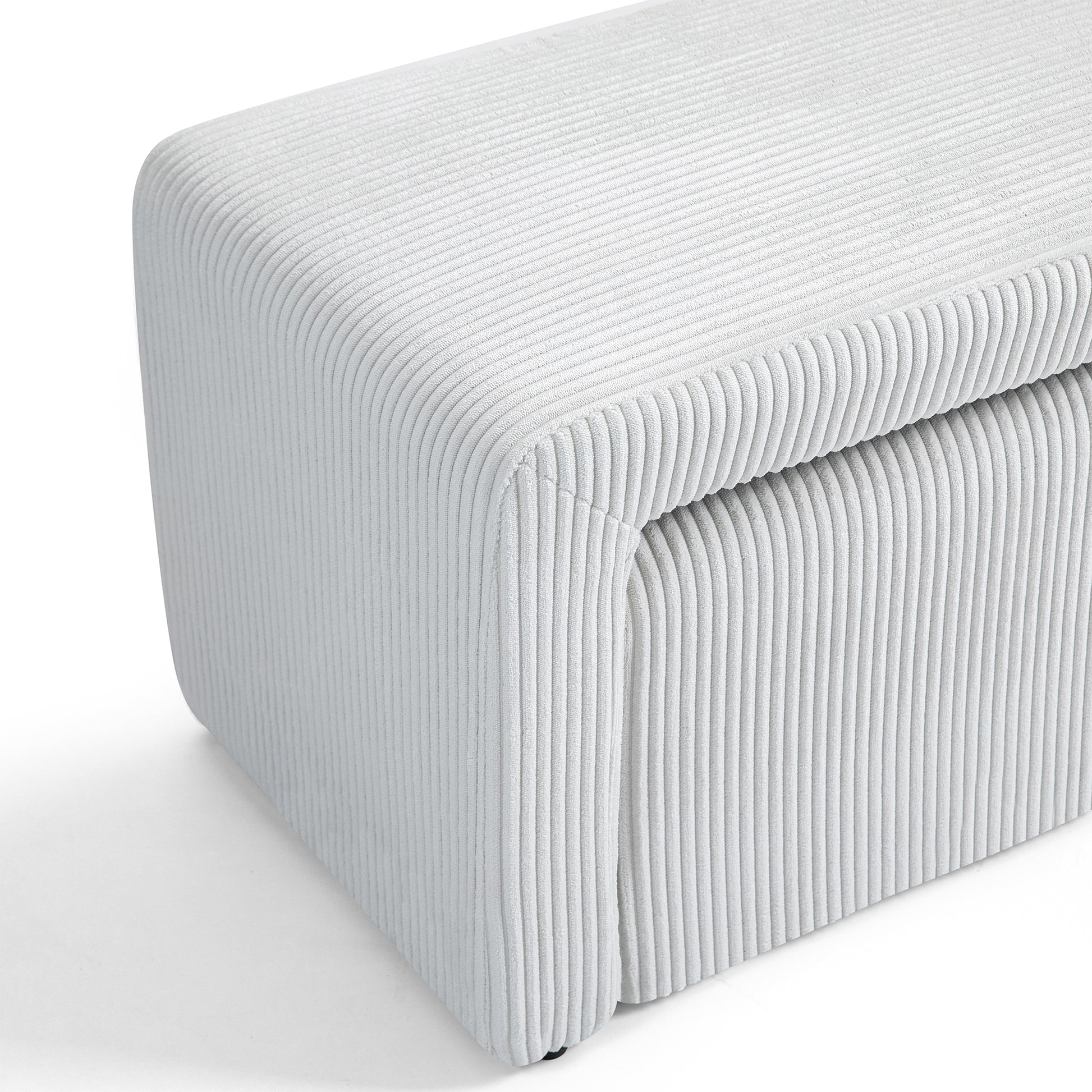 Belgin Beige Corduroy Velvet Fabric Bench with Ottomans
