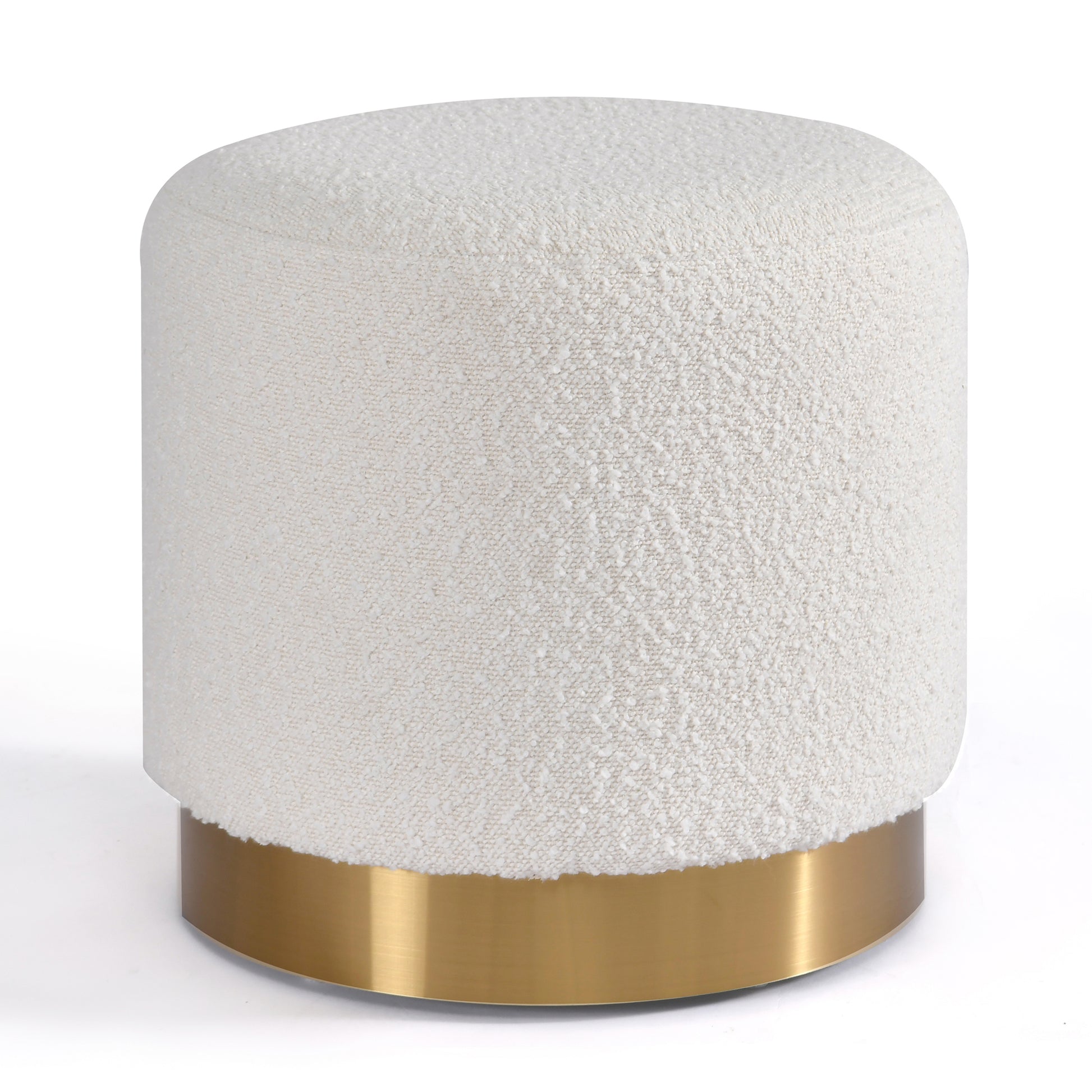 Bellini White Boucle Fabric Round Footstool Ottoman with Golden Accent Base Medium Size