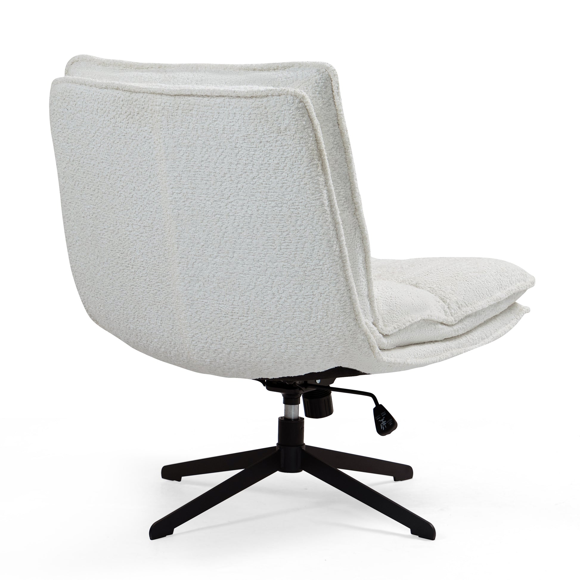 Benecia White Boucle Upholstered Fabric Accent Chair with Black Metal Swivel Legs