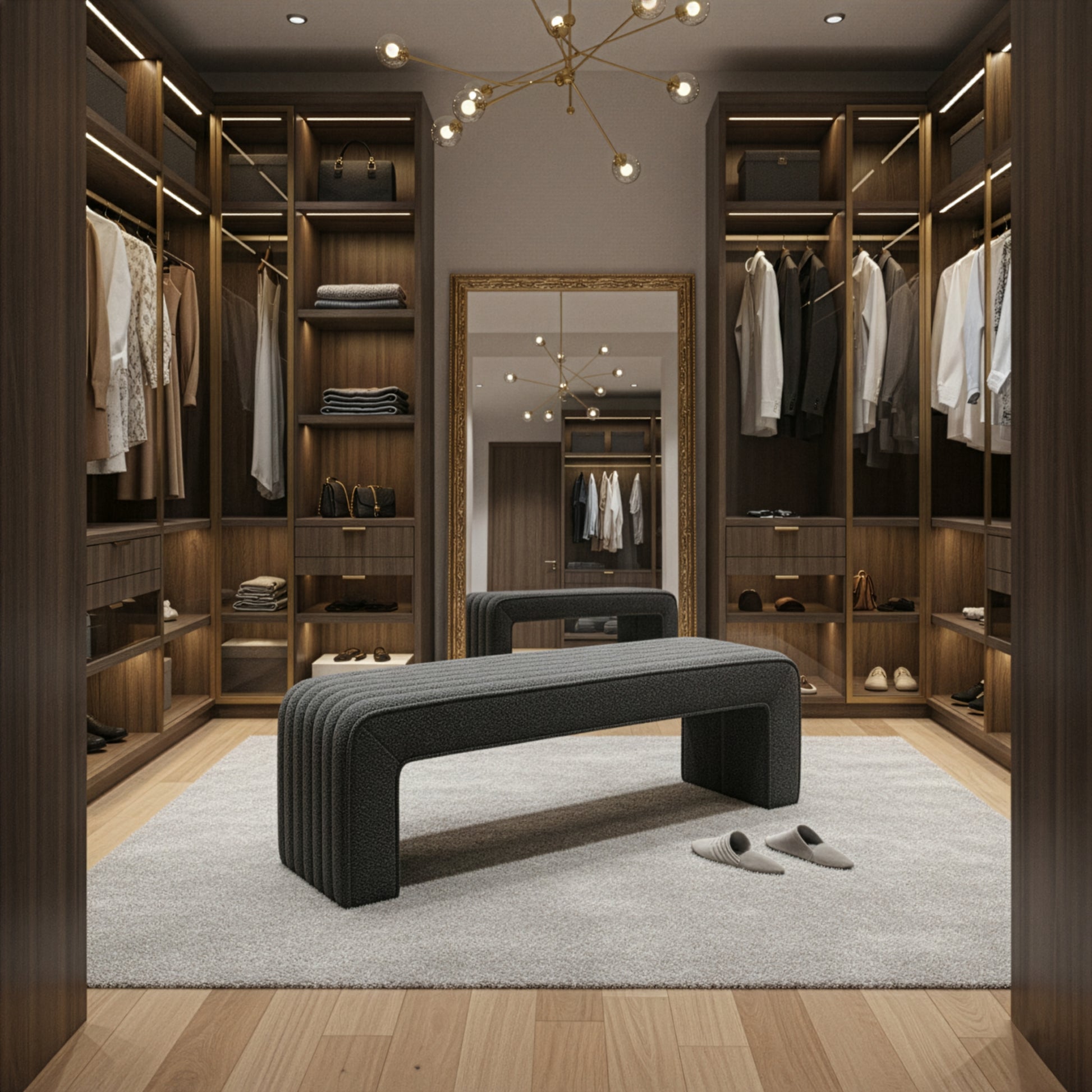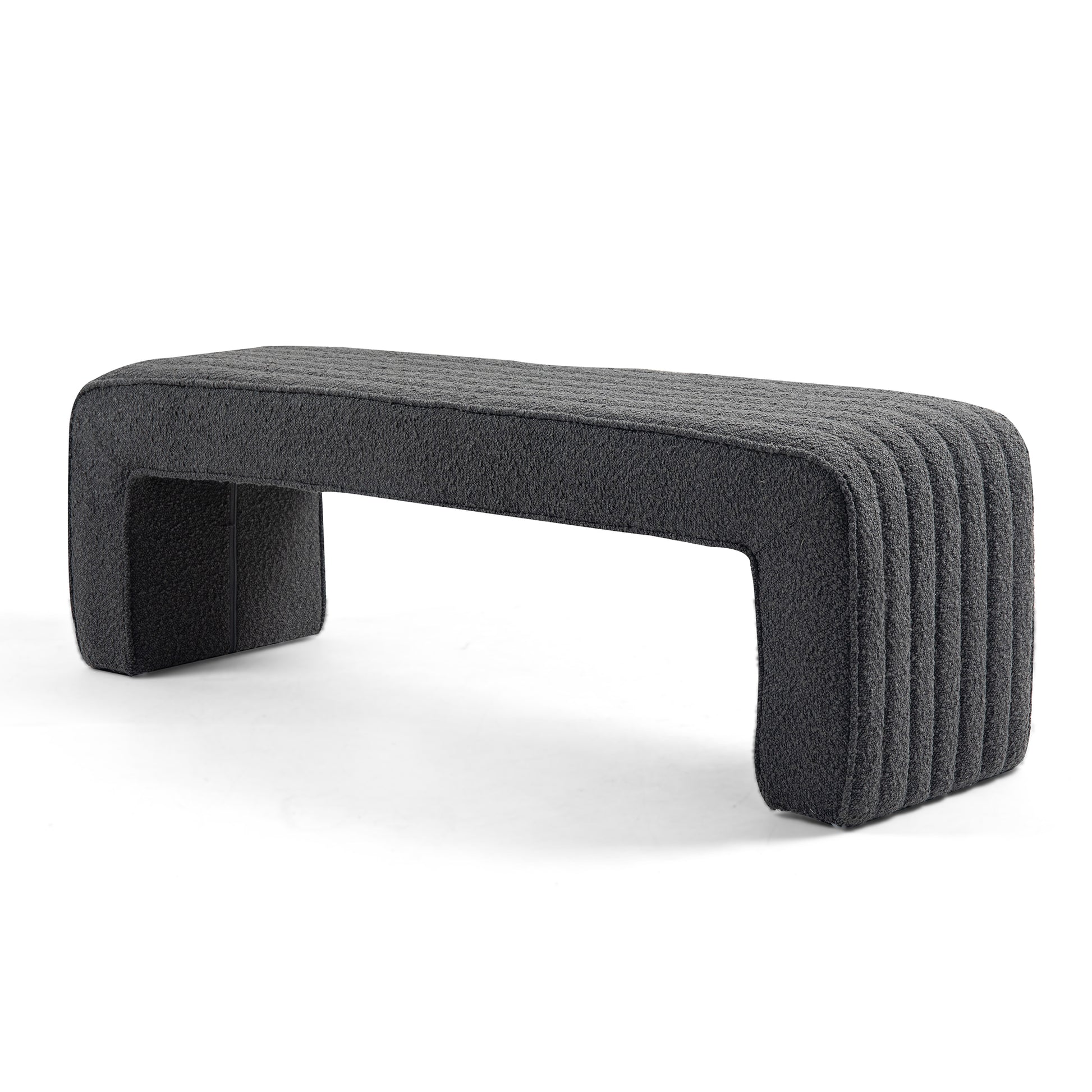 Elevate your space with our chic gray boucle upholstered fabric bench, designed for both style and comfort. This versatile piece features. The rich texture and luxurious finish add a touch of elegance to any room, while providing extra seating and a cozy spot for relaxation.