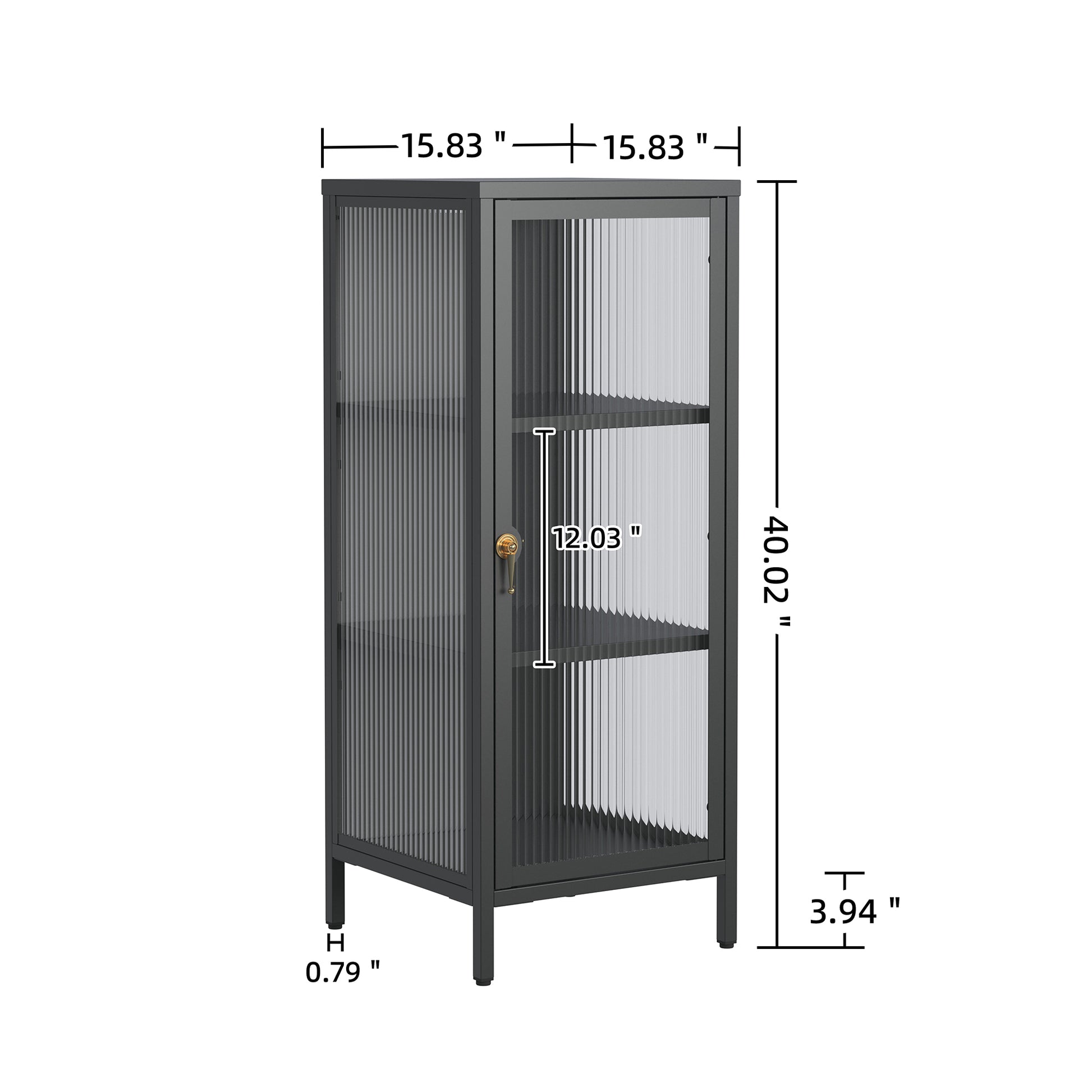 Benoite 40.02-inch Black One Door Storage Cabinet with Fluted Clear Door and Gold Handle