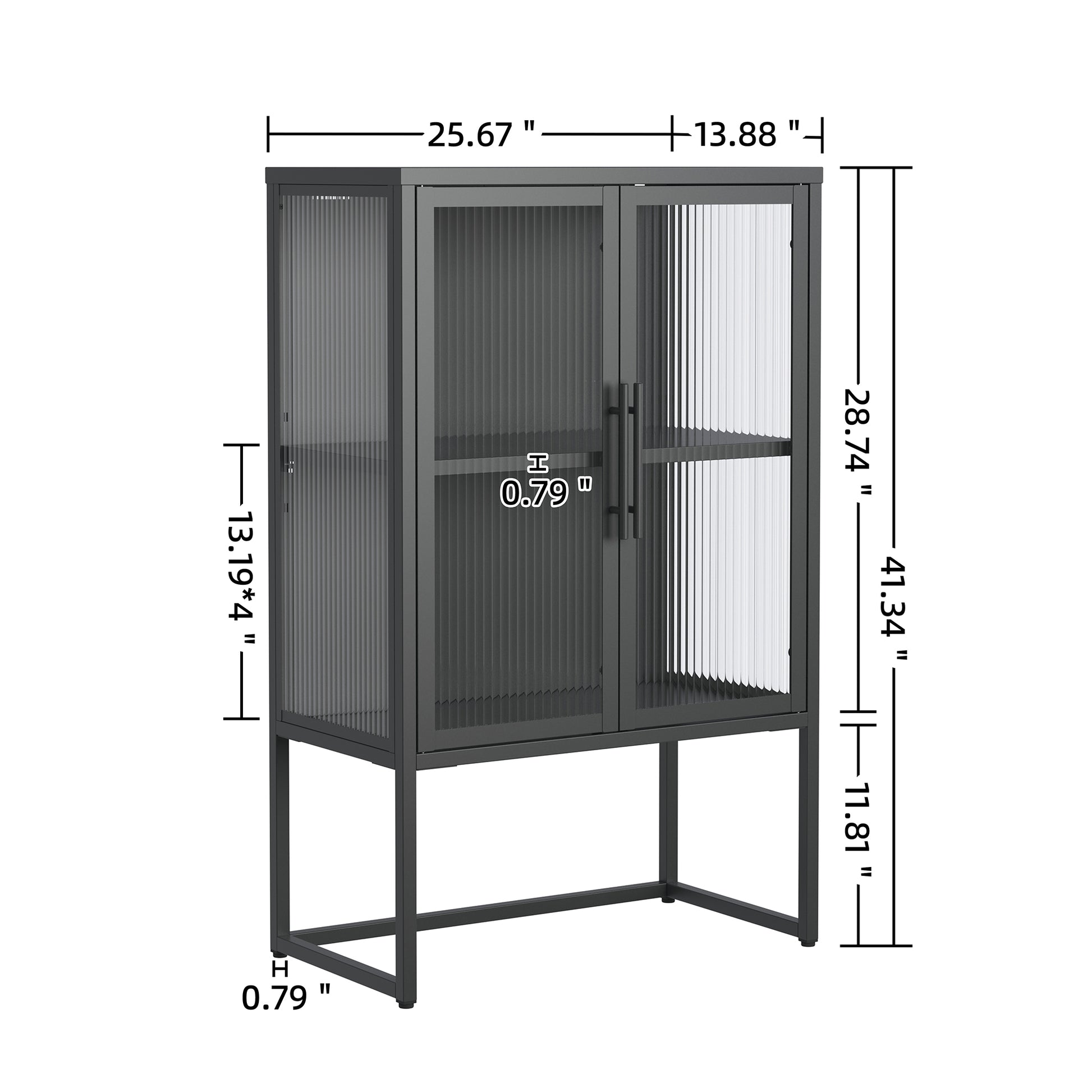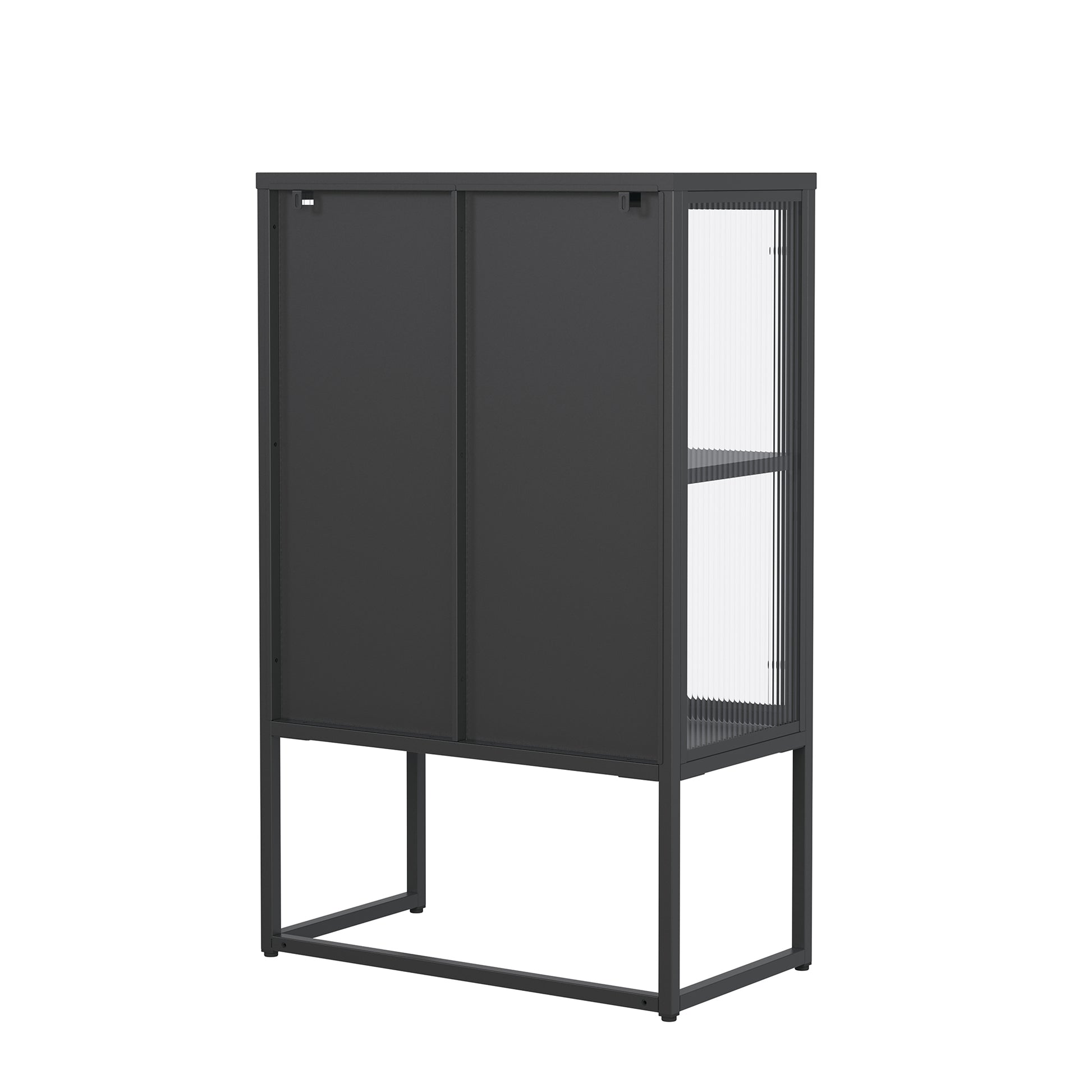 Benvolio 41.34-inch Black Two Door Storage Cabinet with Fluted Clear Doors
