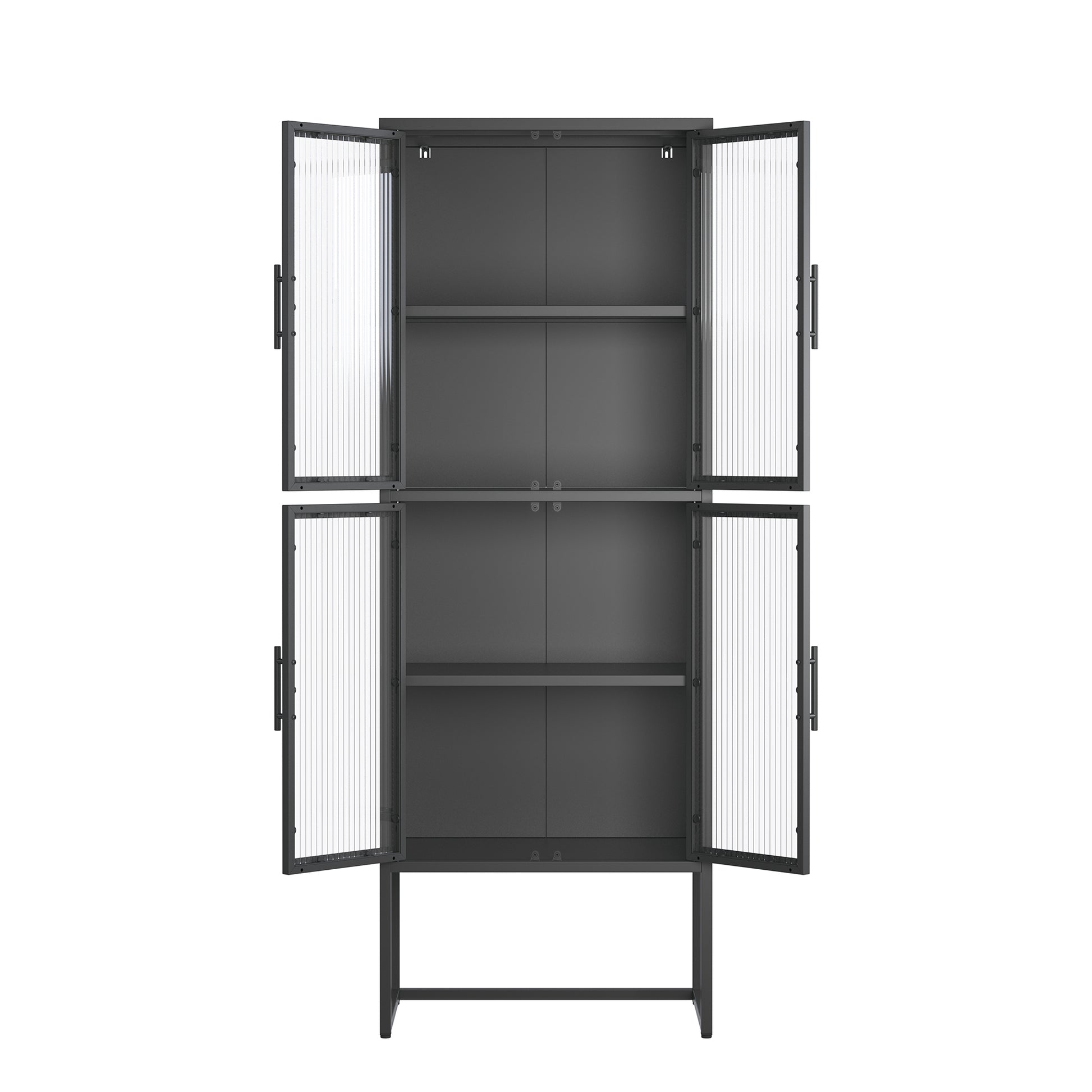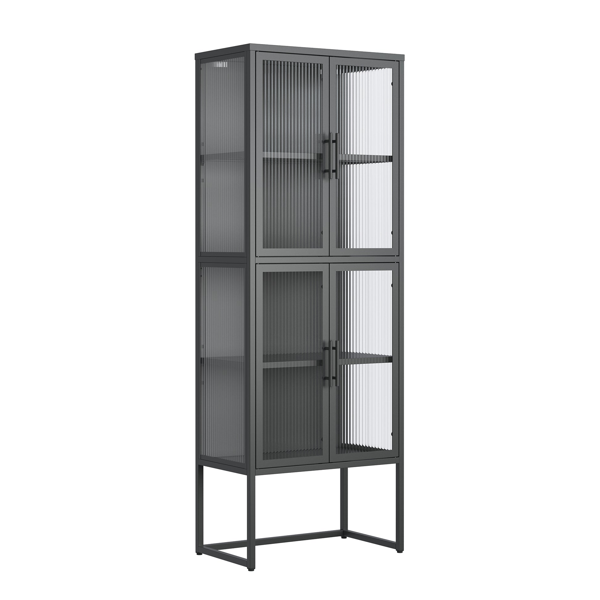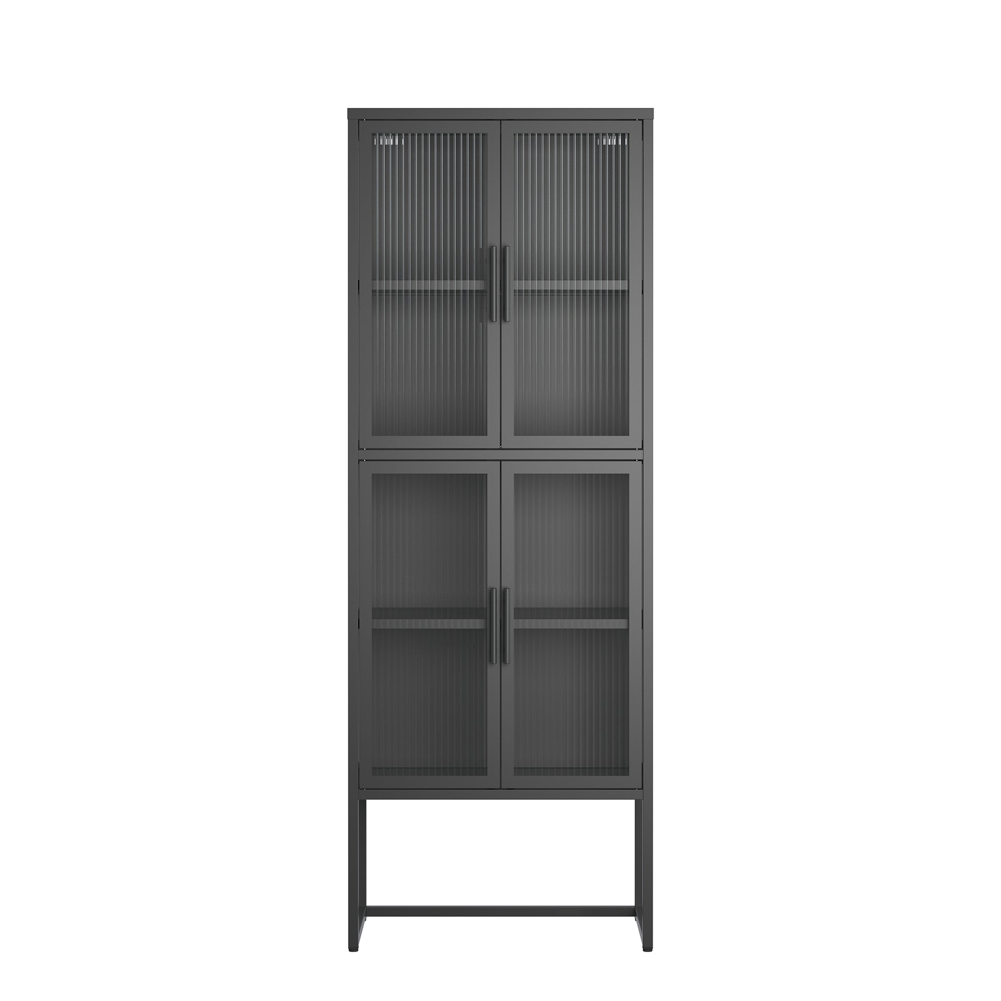 Benvolio 65.35-inch Black Four Door Storage Cabinet with Fluted Clear Doors