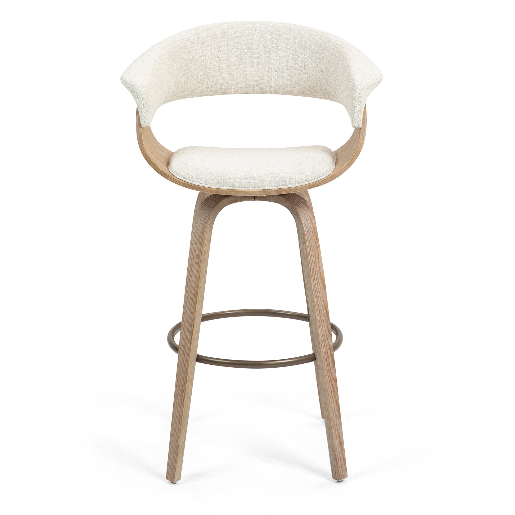 Elevate your dining space with our exquisite beige upholstered fabric bar stool. Embrace the fusion of comfort and elegance with natural wood arms and legs, exuding warmth and sophistication. Whether entertaining guests or enjoying a quiet meal, indulge in luxurious comfort and timeless style. Redefine your dining experience with this impeccable piece of furniture.