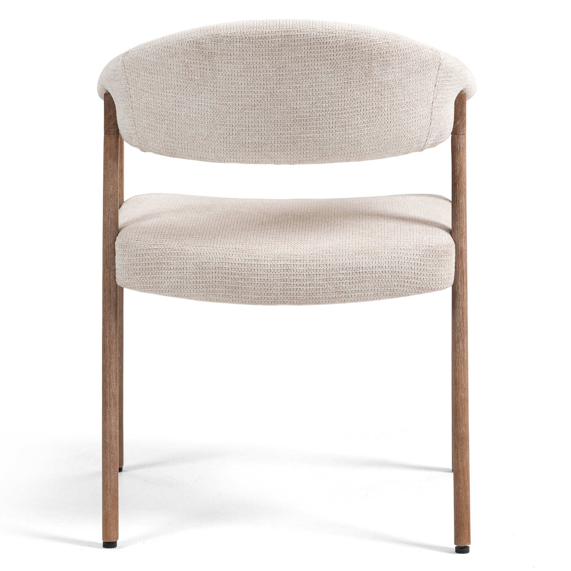 Discover understated elegance with our beige woven fabric dining chair. Crafted with a walnut solid wood arms and legs, it radiates warmth and sophistication. Beige washed upholstery add a touch of modernity and durability, enhancing its timeless appeal. Whether hosting dinner parties or enjoying family meals, indulge in comfort and style. Elevate your dining experience with this exquisite blend of craftsmanship and design.