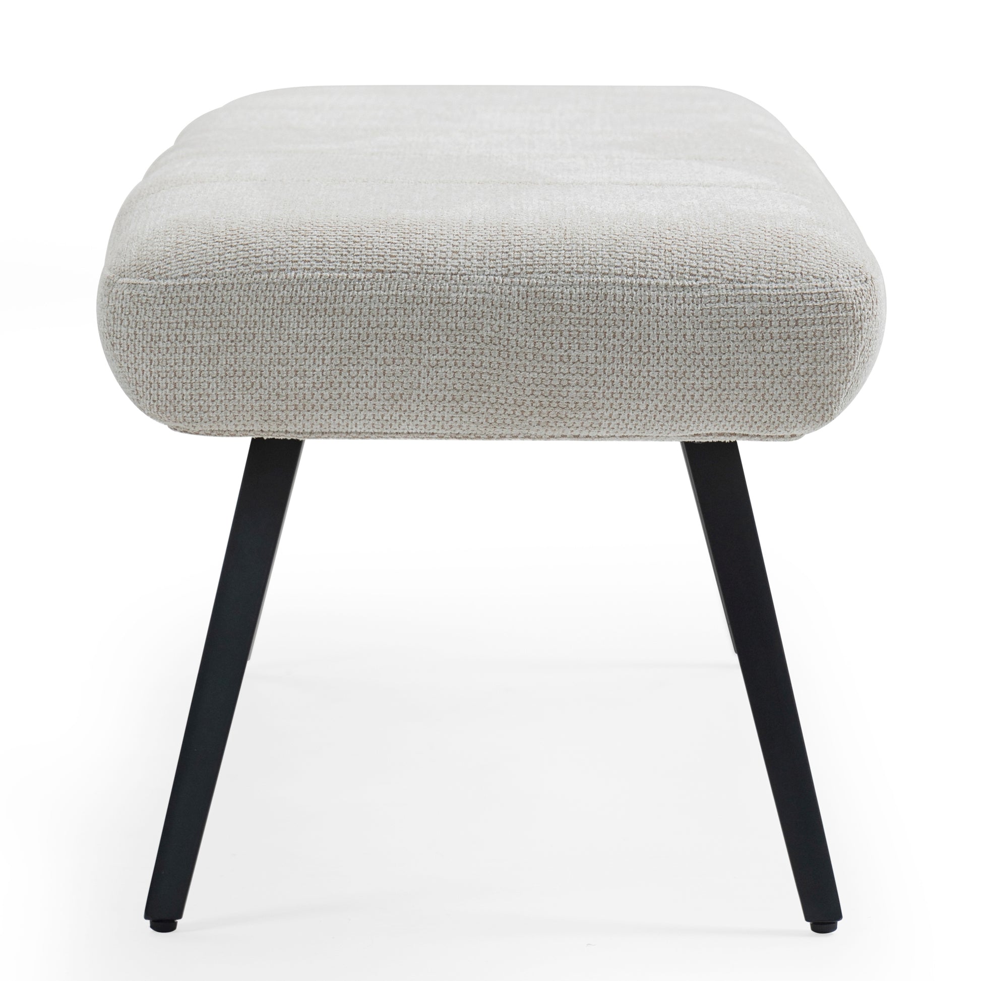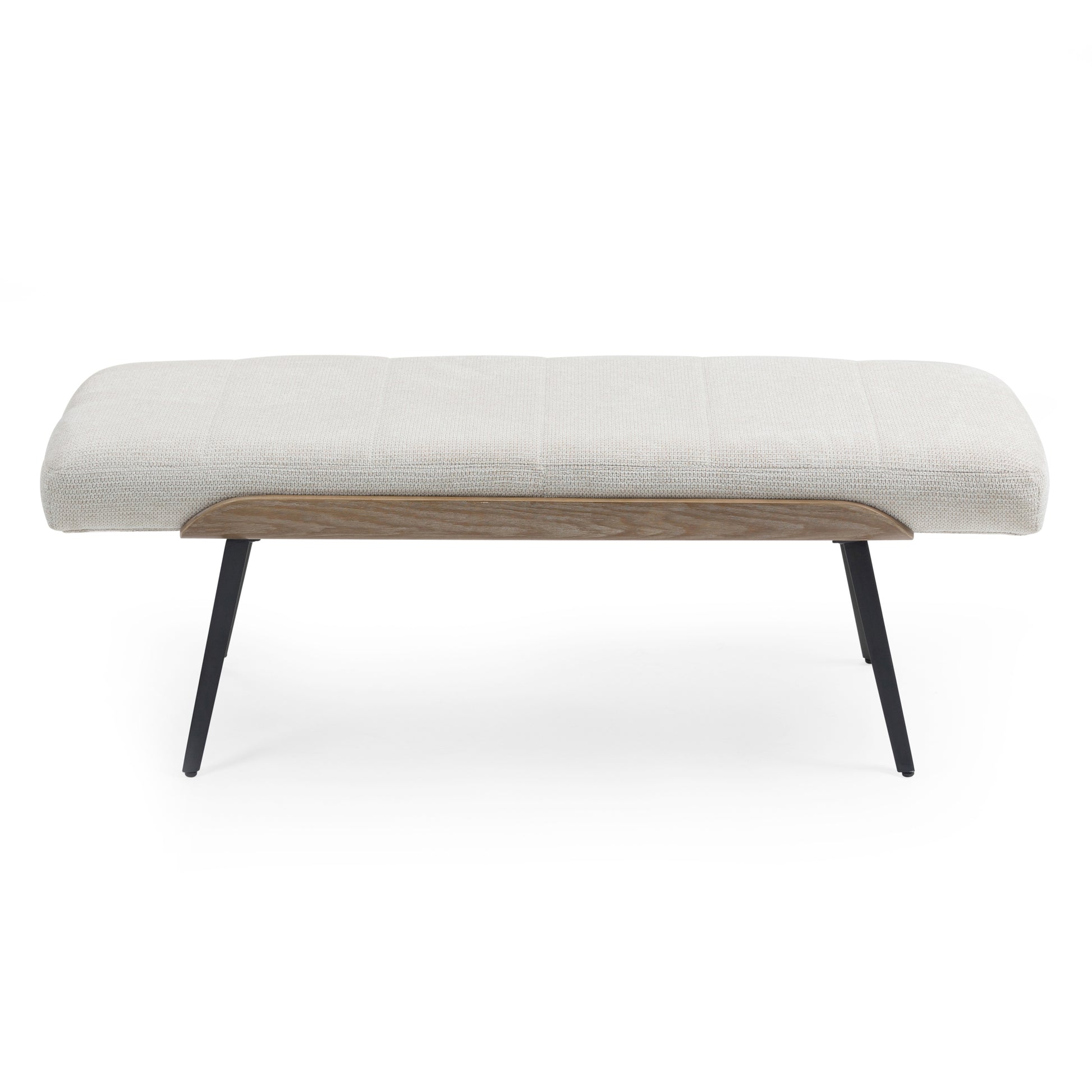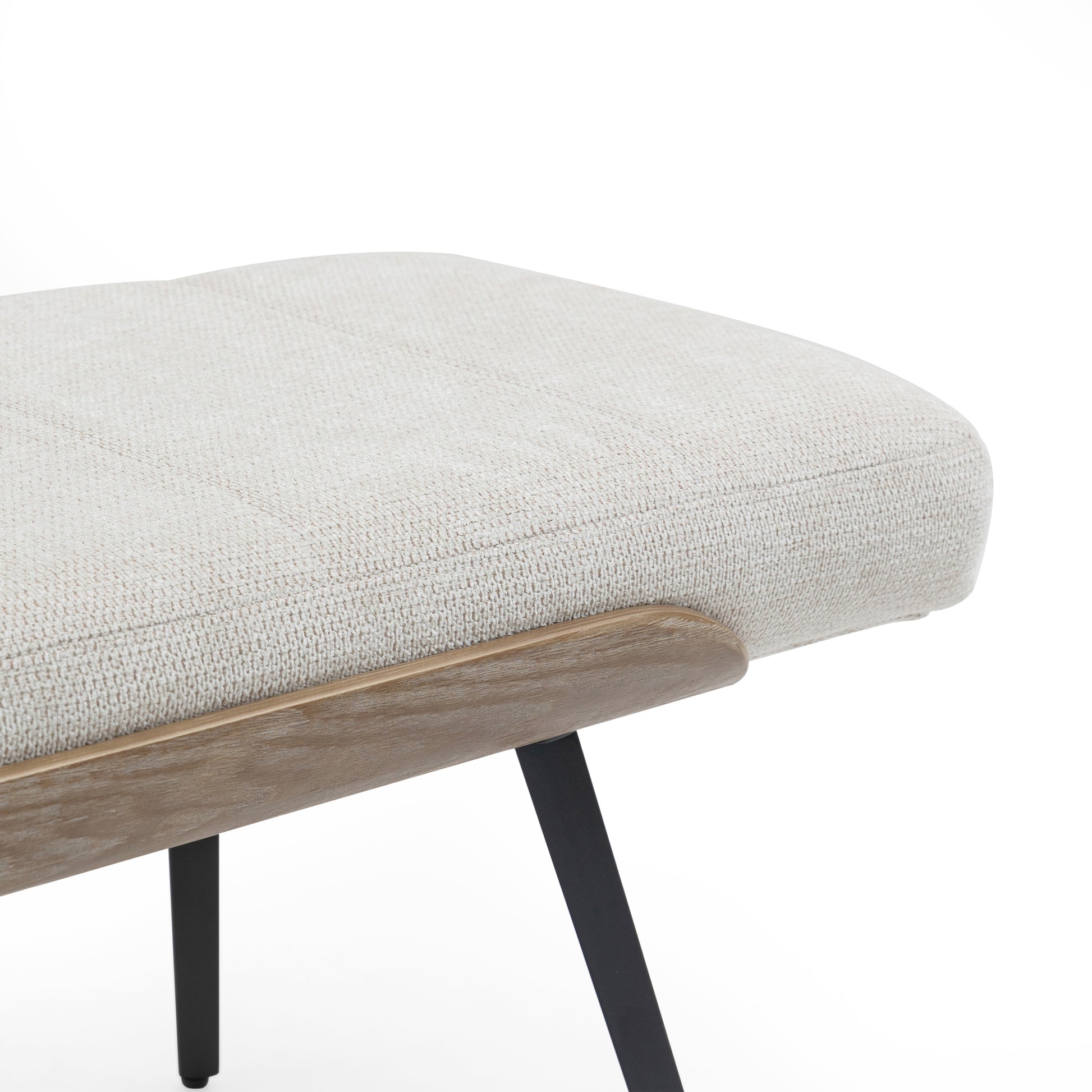 Bevin Beige Washed Woven Fabric Bench with White Washed Wood Accents and Black Iron Legs