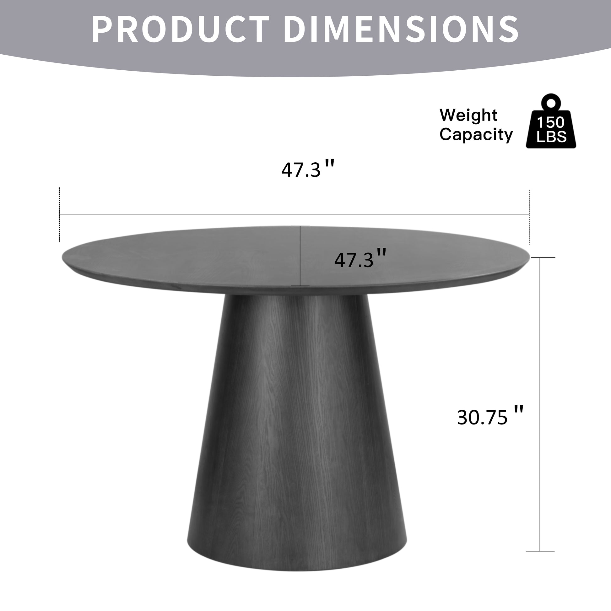 Timeless form meets modern sophistication in this round pedestal wood dining table, designed to anchor your dining space with warmth and elegance. Expertly crafted from durable wood and finished in a black stain. The round table is perfect for meals, coffee chats, or casual gatherings, comfortably accommodating up to six people. What truly sets this piece apart is its sculptural pedestal base. With its bold, cone-shaped silhouette, the base provides exceptional stability while making a confident design statement. The seamless transition between the base and tabletop gives the table a minimalist appeal that pairs effortlessly with a variety of interior styles—whether you're decorating a modern home, a contemporary apartment, or a cozy transitional dining room.