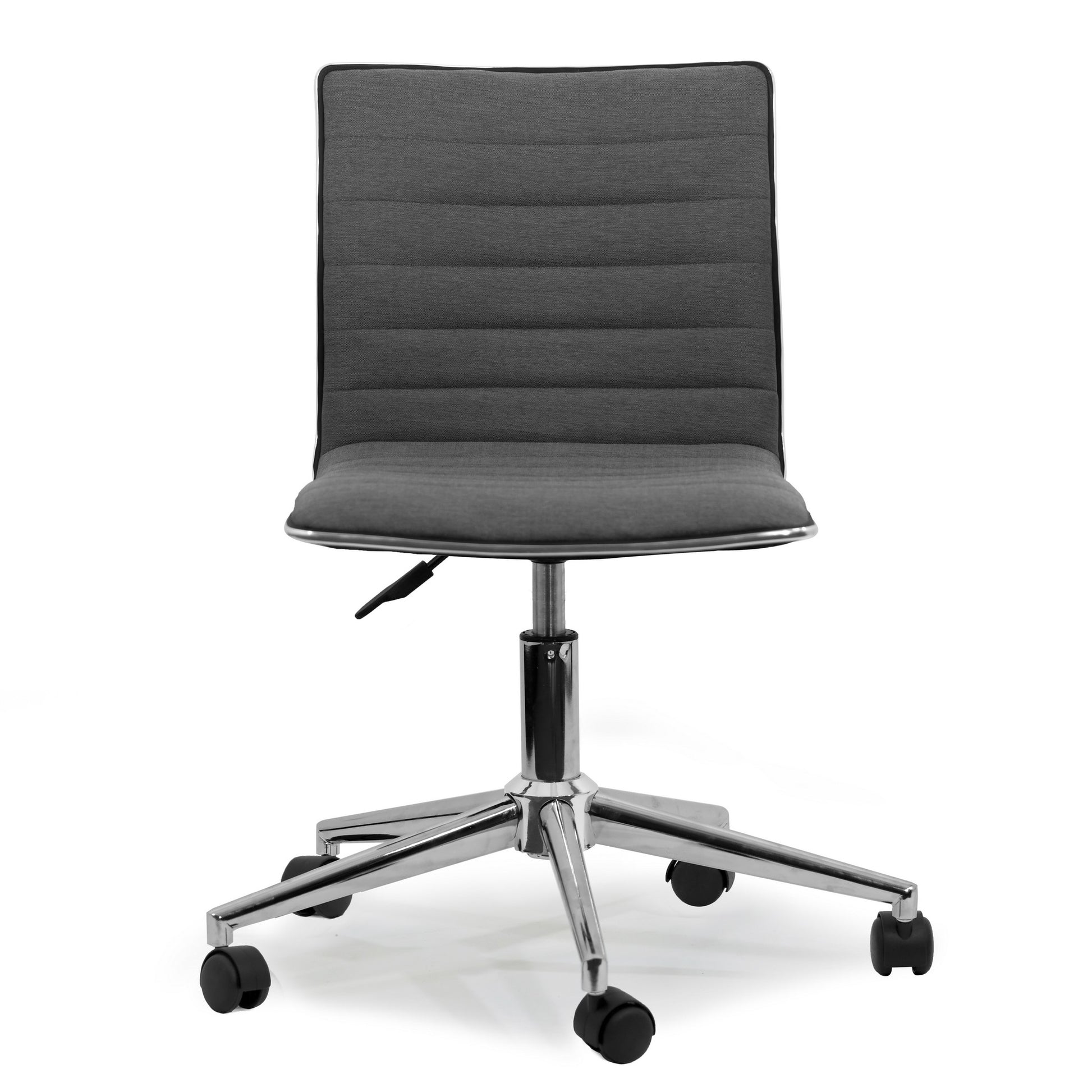 Looking for an office chair that represents your modern taste? This is the right chair for you. Grey fabric seating with chrome frame adds elegance to your work space, while the five-wheel base provides ease and convenience.