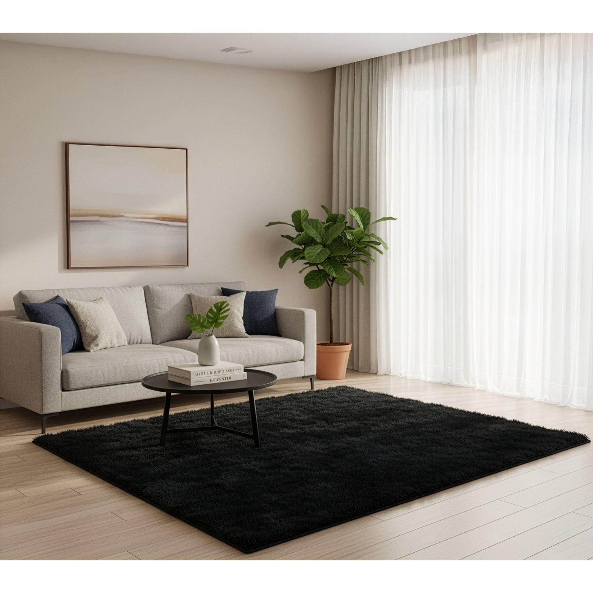 Wanting the luxury look of fur but not liking animal products? This faux fur area rug is your perfect choice. This product imitates the texture and feel of sheepskin. With soft texture and suede-like backing, our faux fur area rug is a budget option without compromising comfort and style. Sleek black color is versatile and would fit any decor. Perfect accessory for living room, family room or bedroom.