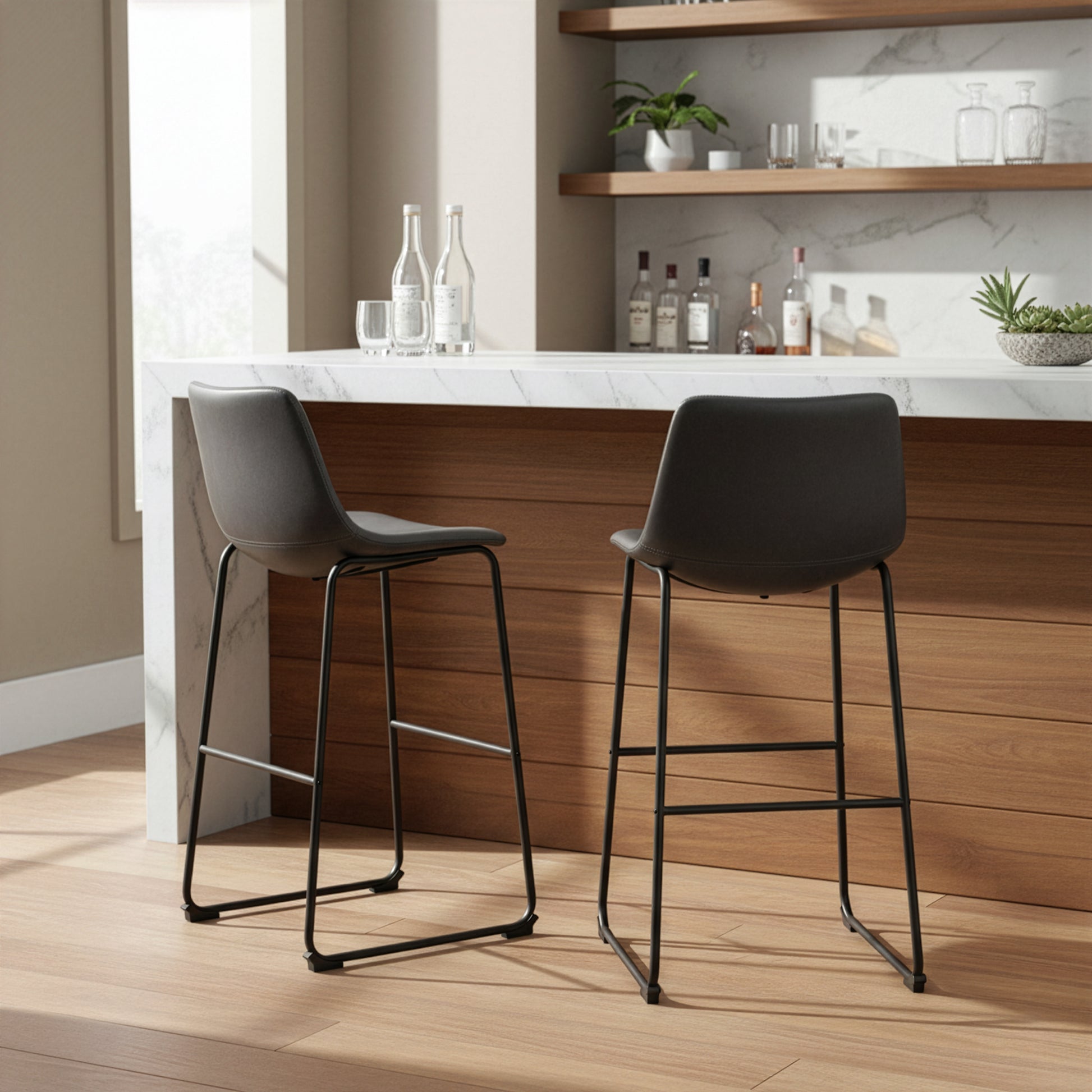 Set of 2 Adan Iron Frame Vintage Grey Faux Leather Bar Stool