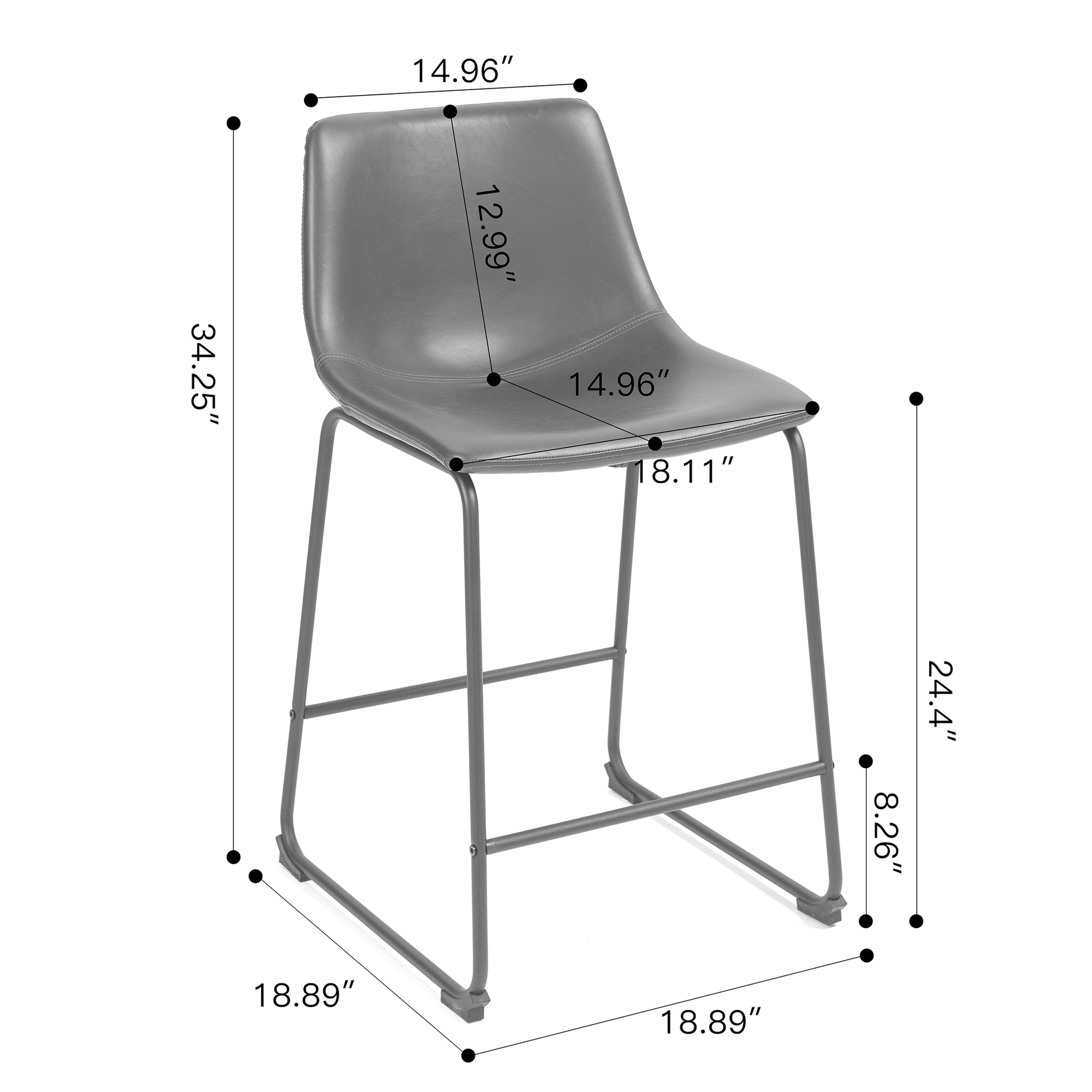 Modern, bold and style are the statements of this counter stool. Vintage gray colored seating area makes this stool unique, while iron frame adds stability and durability. Simple modern design and neutral color scheme help this stool to match your other home décor pieces with ease and style. Floor protectors are attached to the bottom of the frame. This stool can be cleaned with a dry cloth. Matching dining chair and bar stool are also available (sold separately).