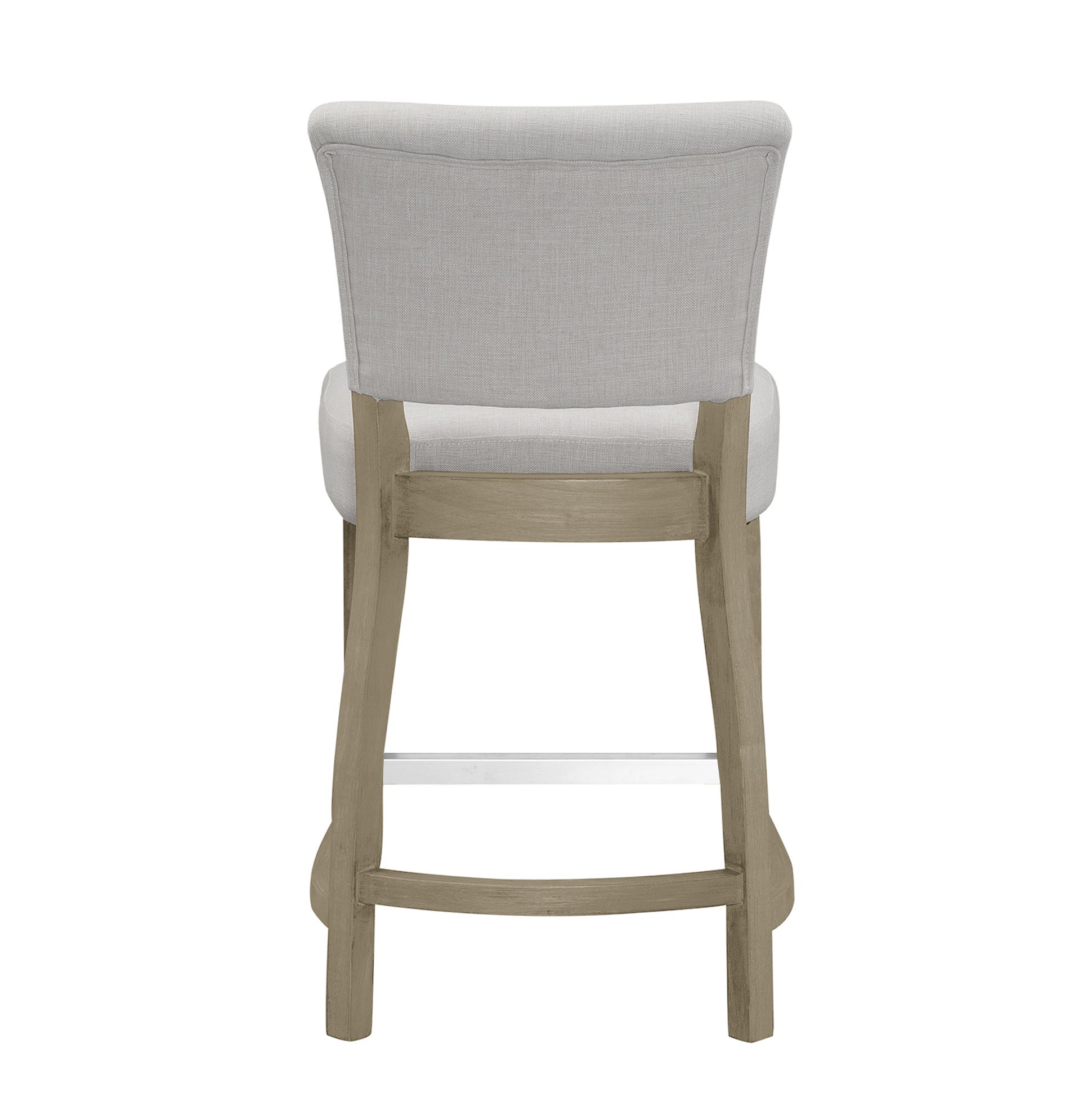 Classic beige fabric counter stool with high quality craftsmanship. Are you looking for a comfortable upholstered stool but do not want too many details? This may be the option for you. Simple yet classic design finished with versatile beige fabric upholstery. Antique finished wood legs and frame offer stability and durability. Footrest is added for better sitting experience and better structure integrity. This stool is counter height. The same design is also available at bar height (sold separately). Minor assembly needed. Spot clean recommended.