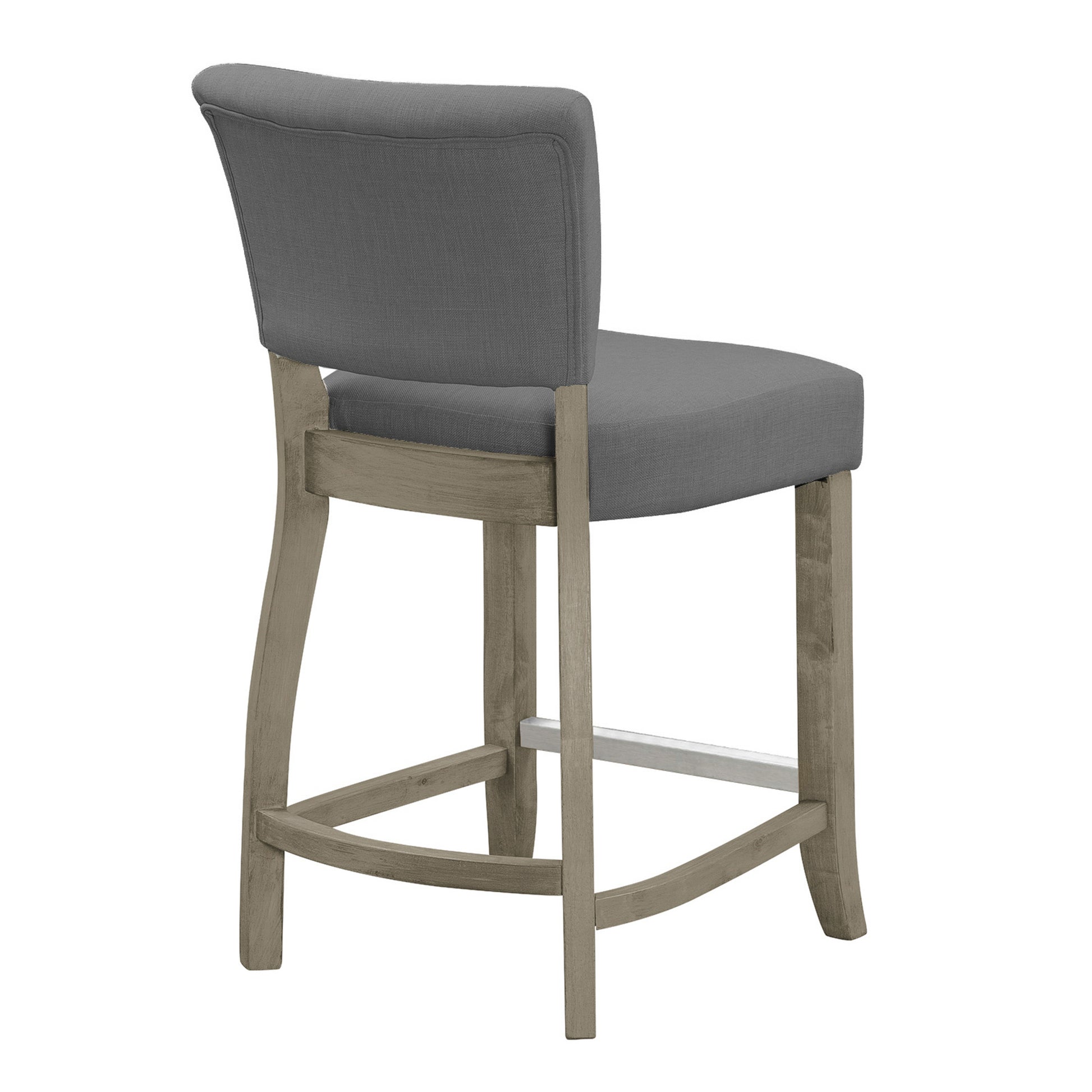 Set of 2 Aleck Grey Fabric Counter Stool with Antique Finish Wood Legs