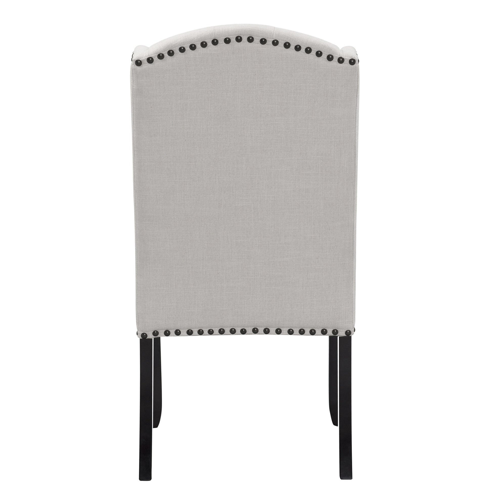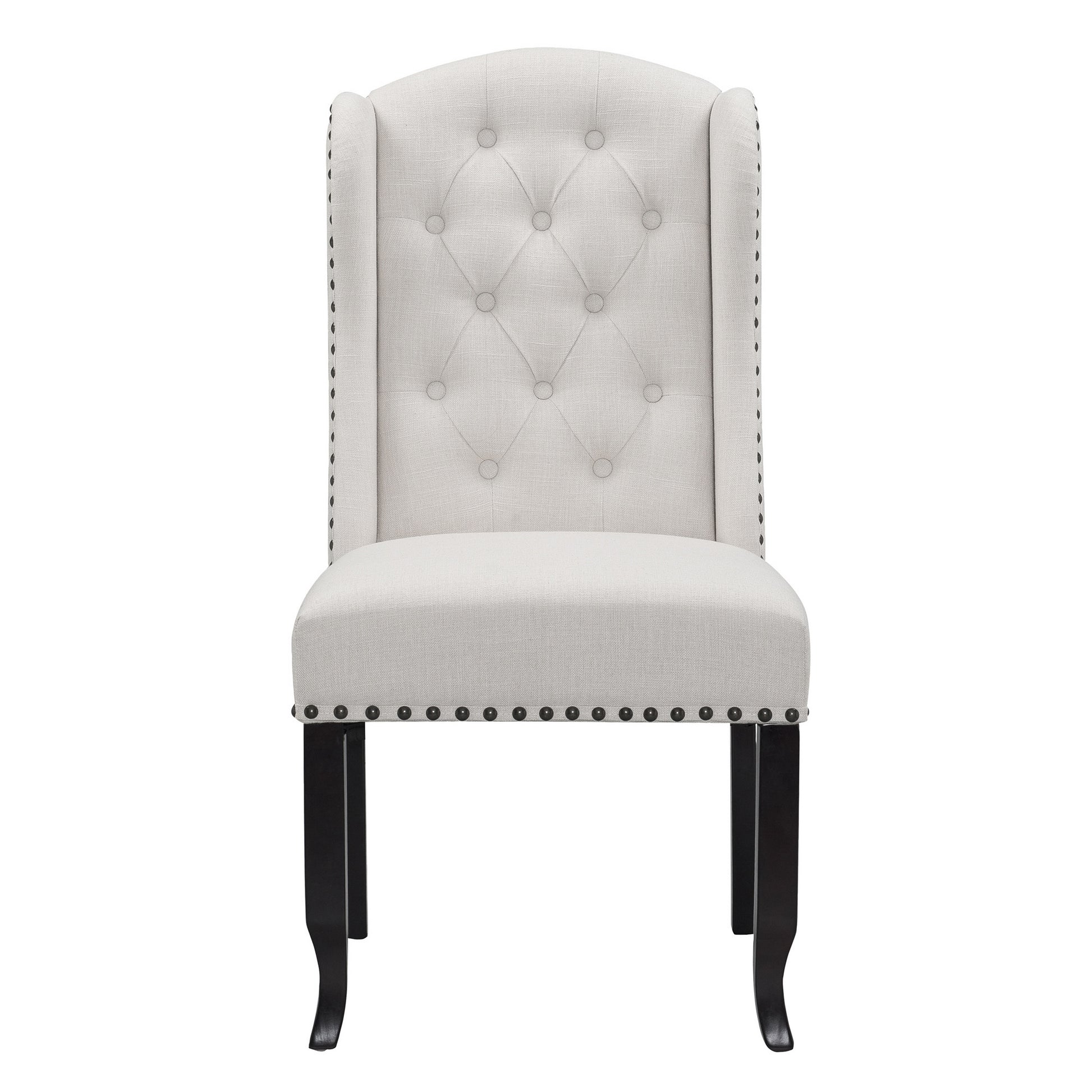 Set of 2 Alen Beige Fabric Dining Chair Wing Chair with Tufted Buttons and Nail Heads