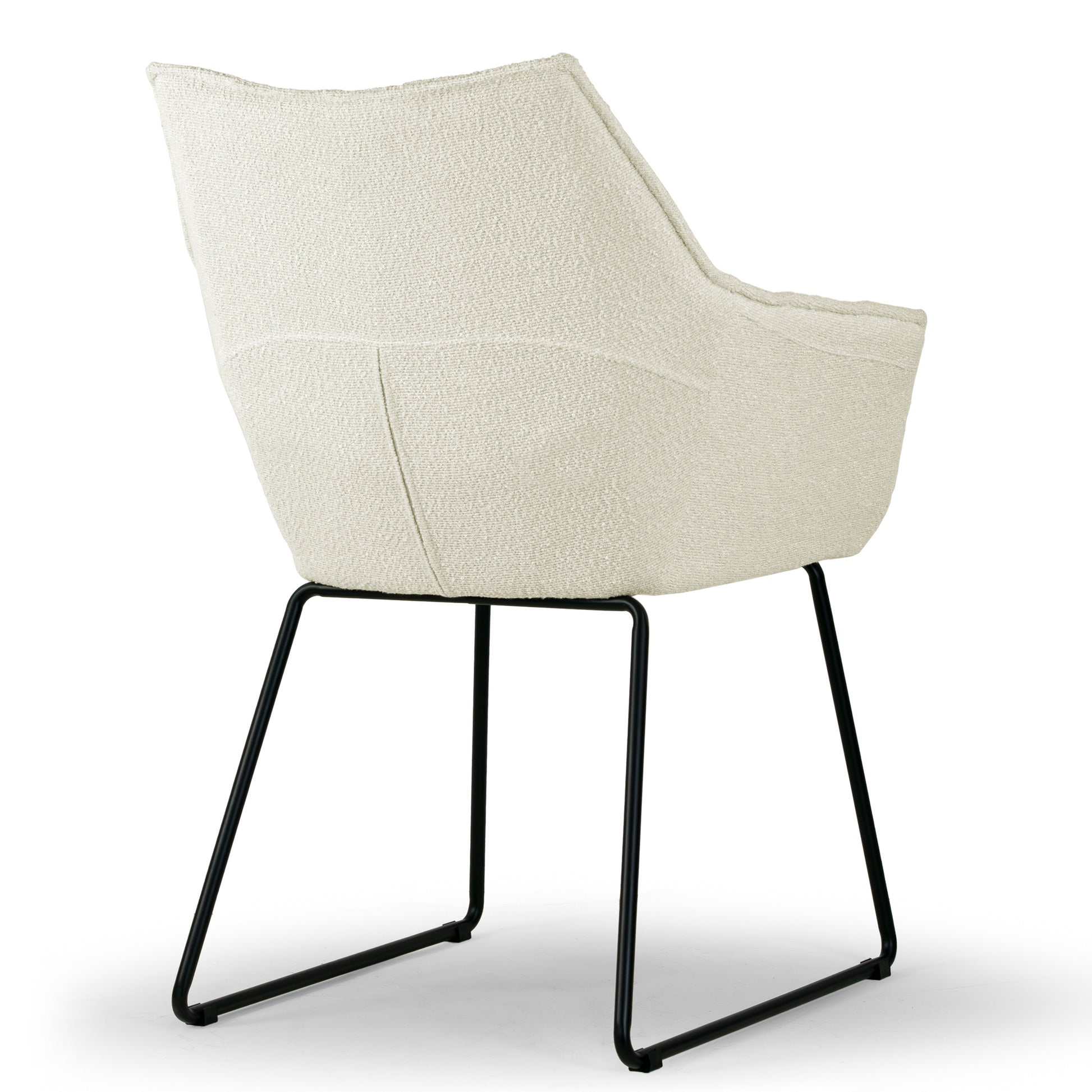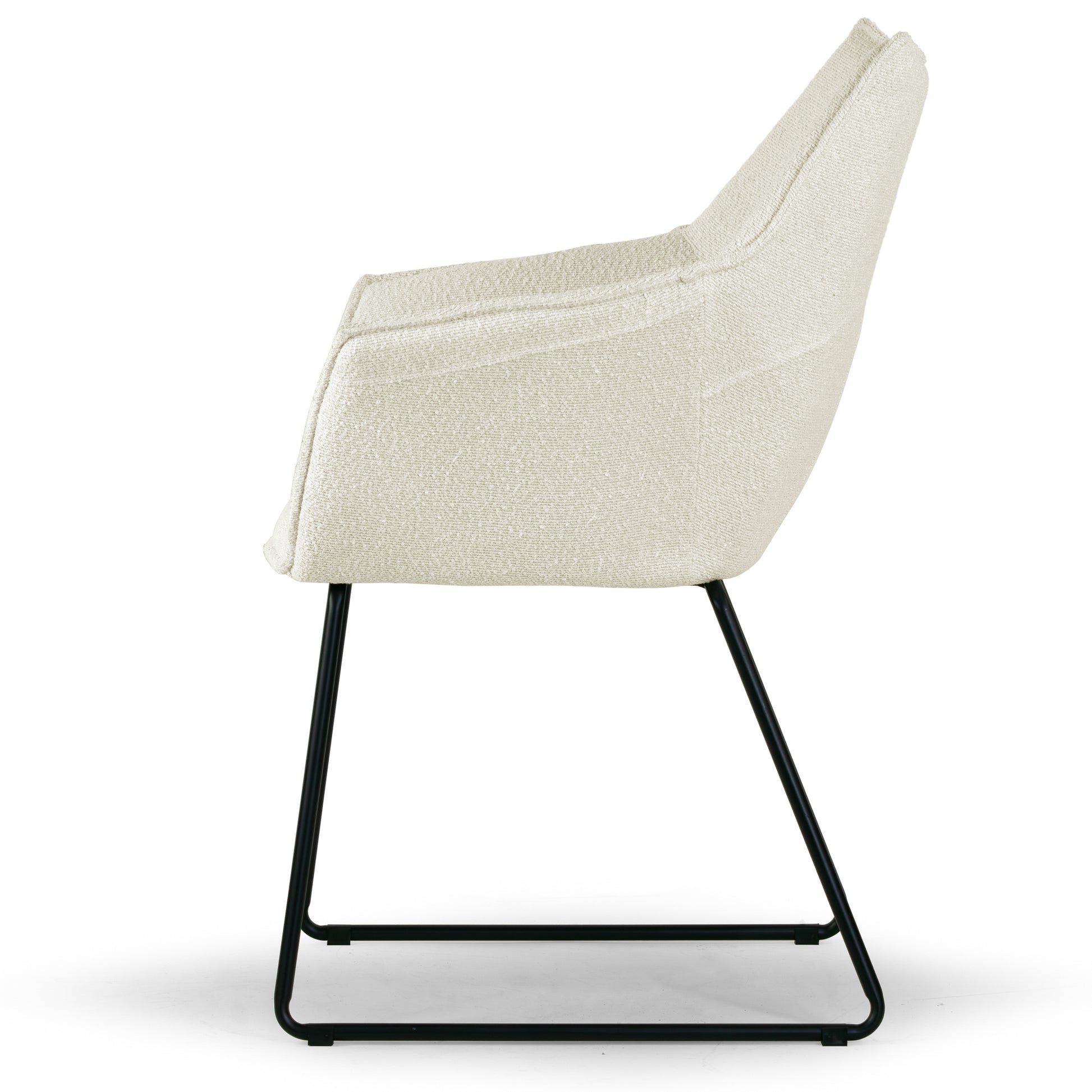 Set of 2 Amna Cream Boucle Arm Chair with Black Metal Legs