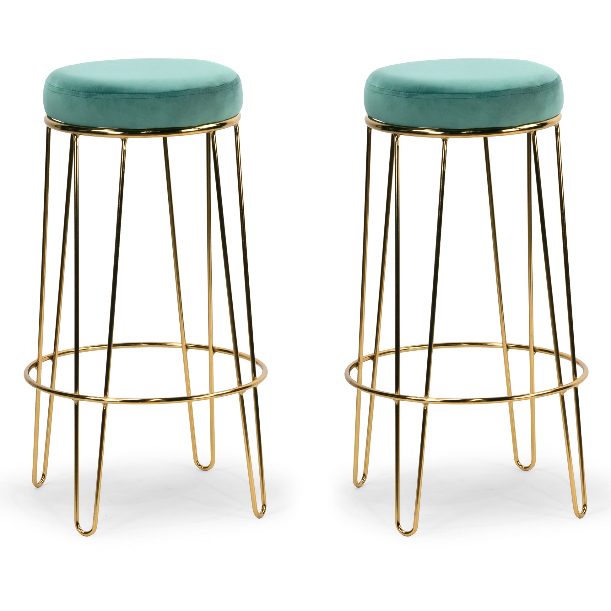 Set of 2 Angie Turquoise Velvet Bar Stool with Golden Metal Frame