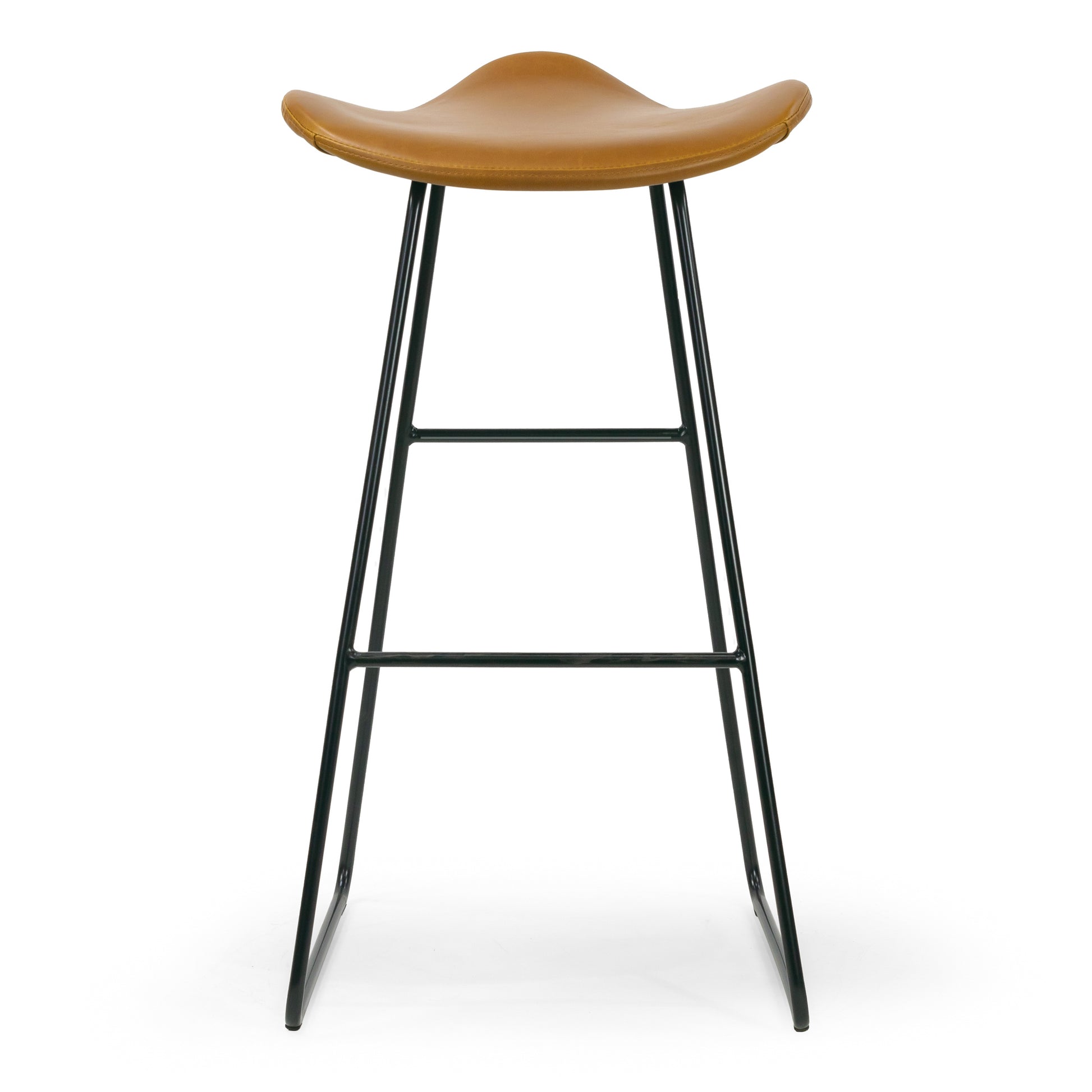 This modern contemporary backless barstool could be a statement piece of your dining room or bar. Simple yet chic design is completed with neutral colored faux leather upholstery. Black metal legs provide sturdiness and durability. Easy assembly. Wipe clean with dry cloth.