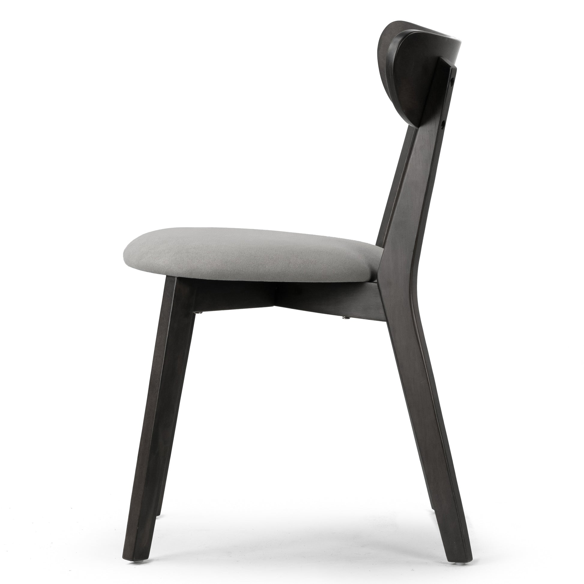 Classic wood dining chair design with a modern twist. This dining chair has fabric upholstered seat, and is cushioned with medium density foam for better comfort of even long-time sitting. Chair frame and legs are made of solid rubberwood, which offers sturdiness and durability.Assembly needed. Spot clean recommended.
