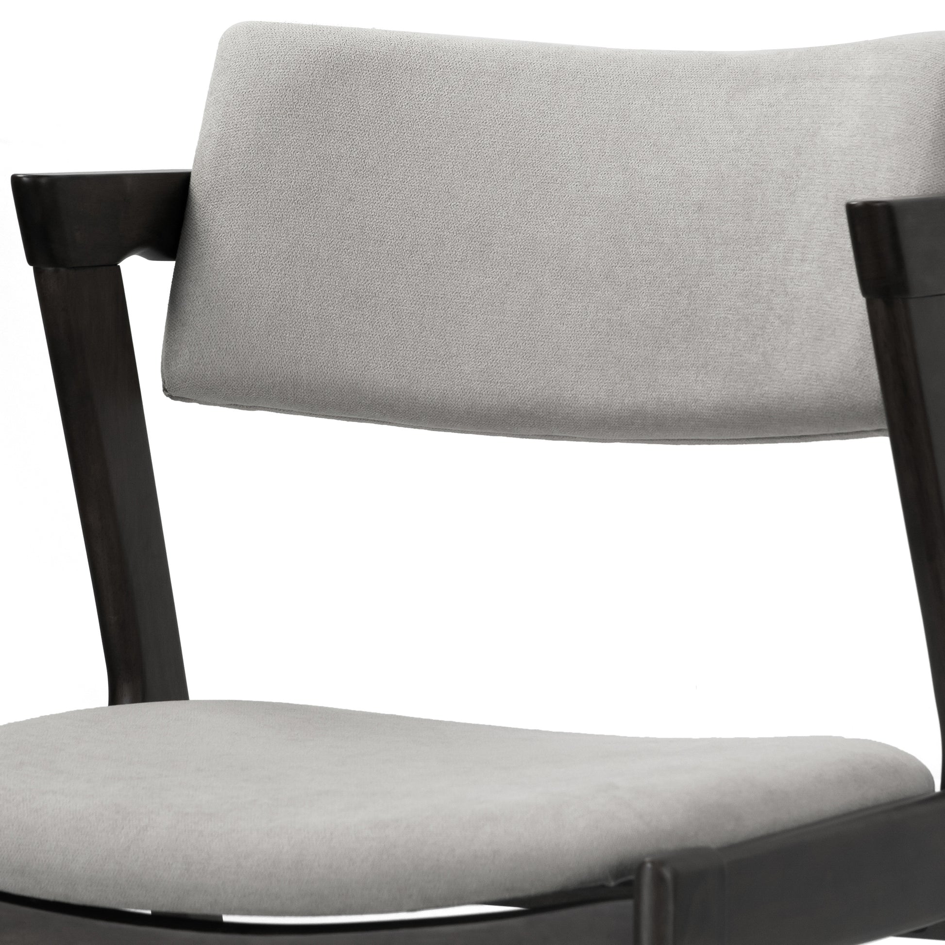 Light grey fabric upholstered chair seat and back