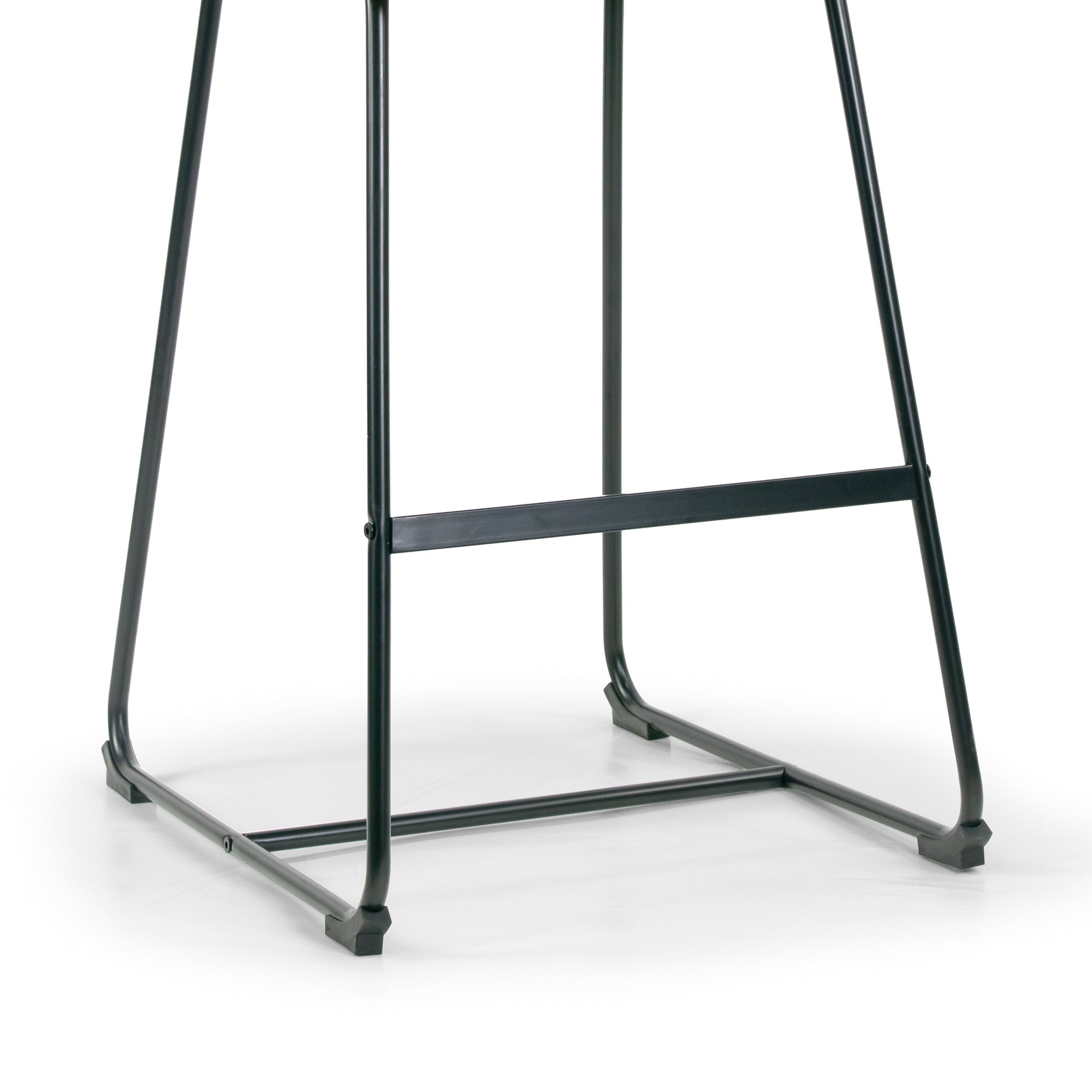 This bar stool is a perfect combination of modern industrial style and comfort. Extra thick seat and back cushions provide extra comfort even for long hours of sitting, while iron frame and legs offer stability and durability. Horizontal stitching on back and seat cushions add details and subtlety. Floor protectors come attached to the stool to minimize damage to your floor. Simple modern design and neutral color scheme help this stool to match your other home décor pieces with ease and elegance.