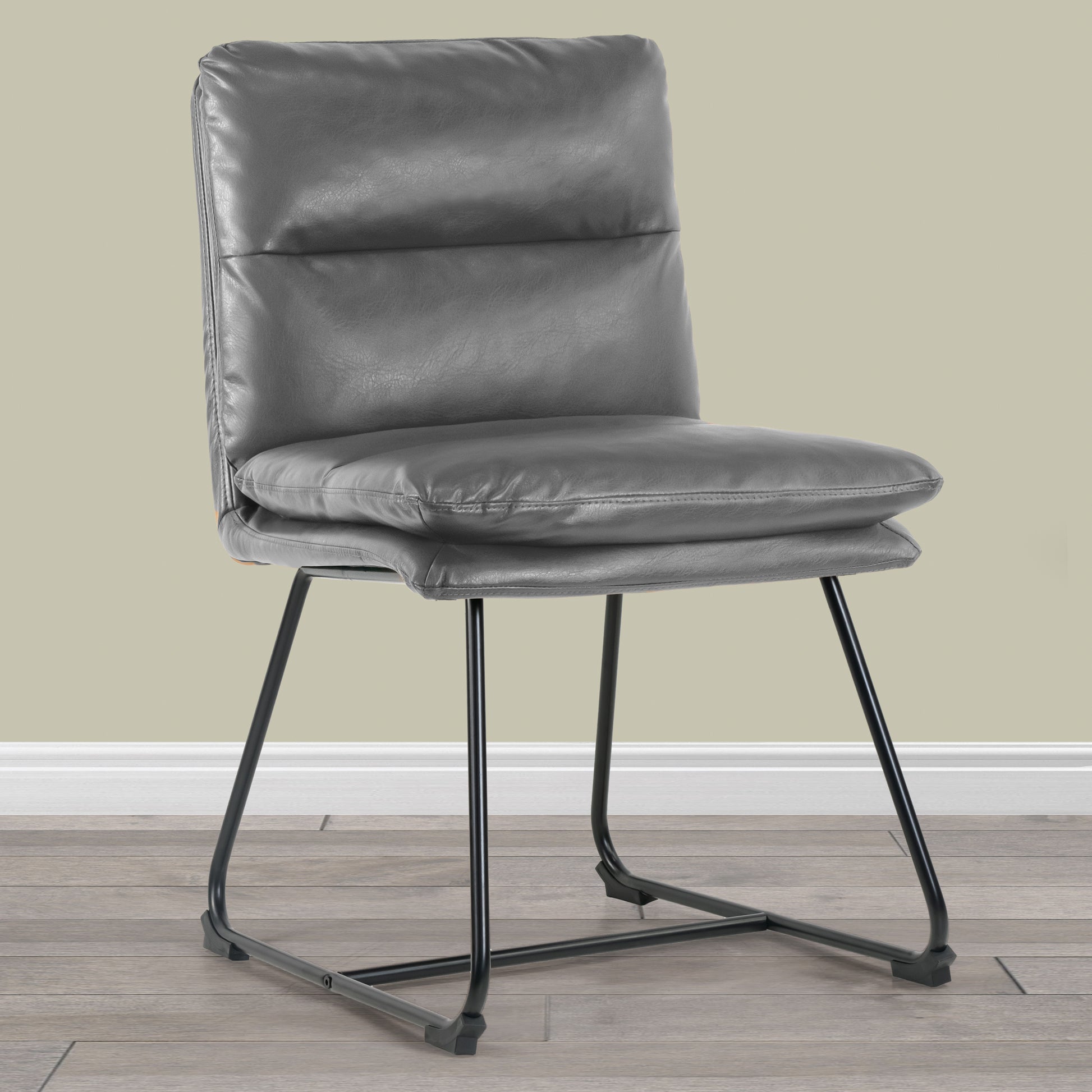 Set of 2 Aulani Grey Upholstered Metal Frame Dining Chair with Puffy Cushions