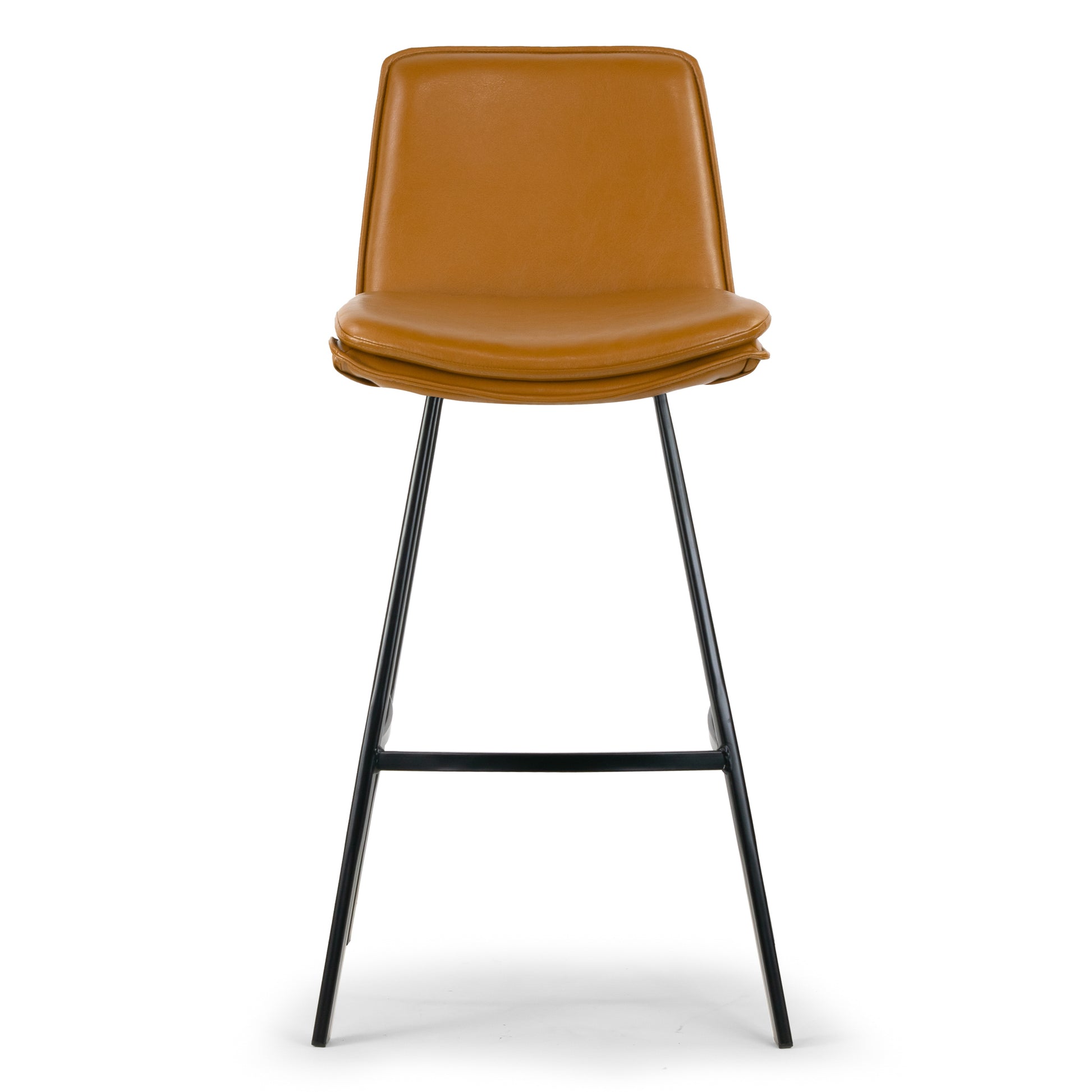 This is a simple bar stool modernized with faux leather upholstery. Structured with black metal frame, this barstool is sturdy and durable. Cappuccino colored faux leather upholstery is completed with piping that goes around the back and seating area. Attached seat cushion offers extra comfort.