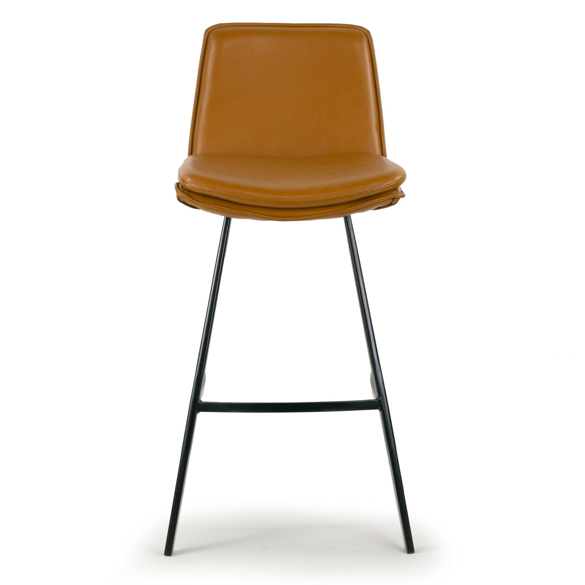 Set of 2 Avalyn Cappuccino Faux Leather Bar Stool with Black Metal Legs